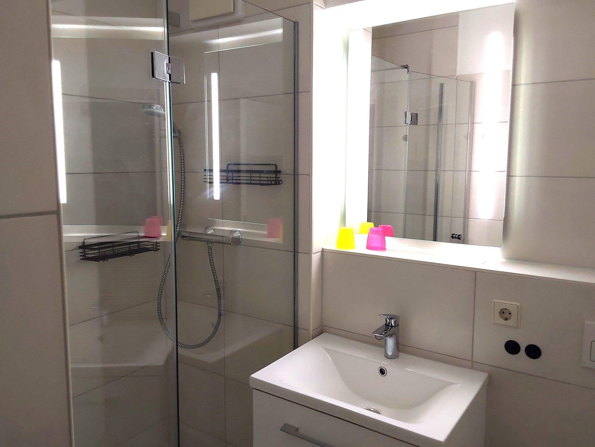 Die FEWO ist für zwei Personen üppig groß und insgesamt gut ausgestattet. Die fehlende Spülmaschine fällt bei zwei Personen kaum ins Gewicht, das fehlende W-Lan ist nicht mehr zeitgemäß. Auch die weißen Plastikstühle auf den Balkonen sollten einmal erneuert werden.