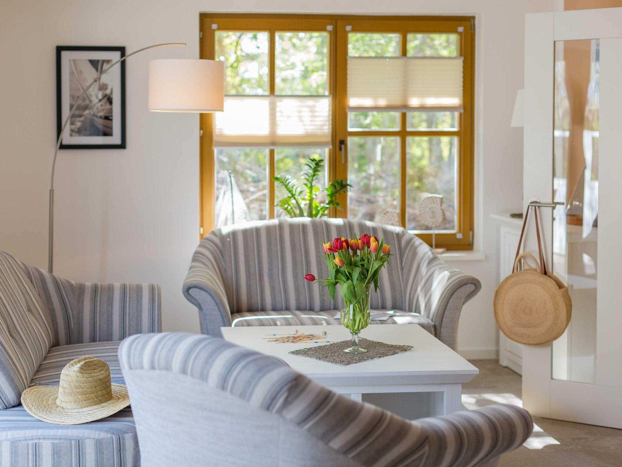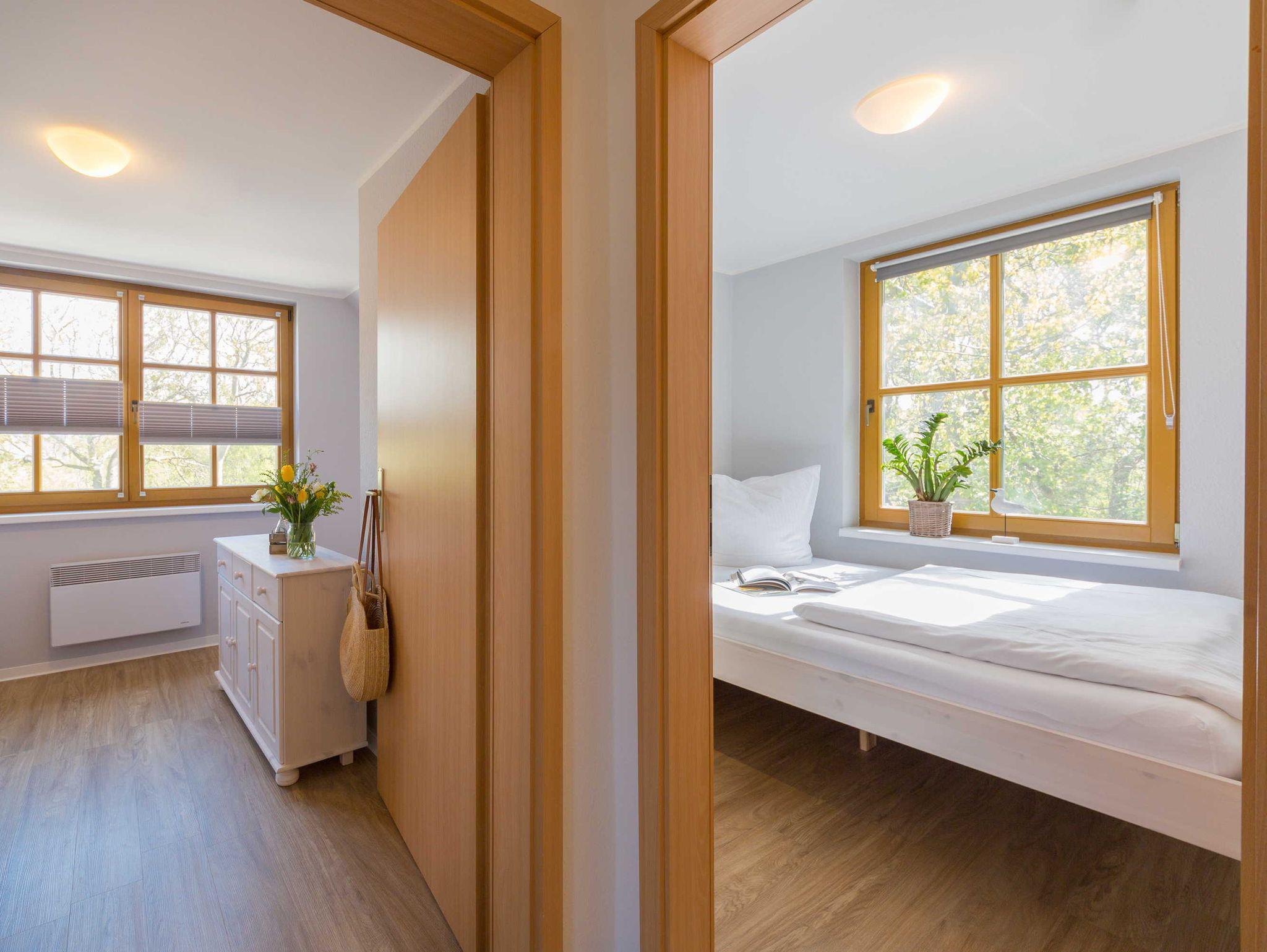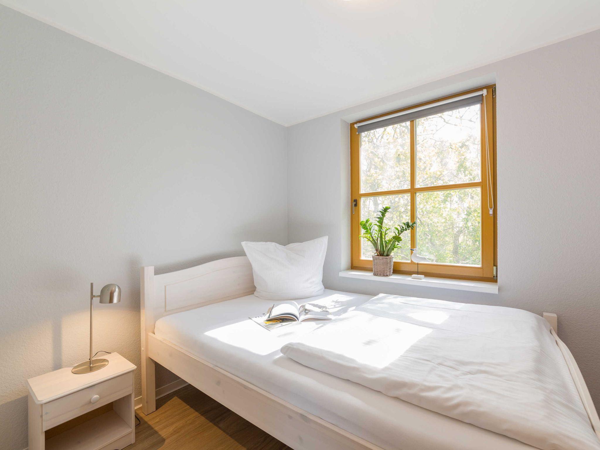 Die 2019 renovierte Doppelhaushälfte ist für bis zu 4 Personen geeignet und ca. 65 qm groß. Sie bietet Ihnen zwei separate Schlafzimmer mit jeweils einem Doppelbett. Die Betten sind 180 cm und 140 cm breit. Ein Schlafzimmer hat zusätzlich ein Zustellbett mit einer Breite von 90 cm.
