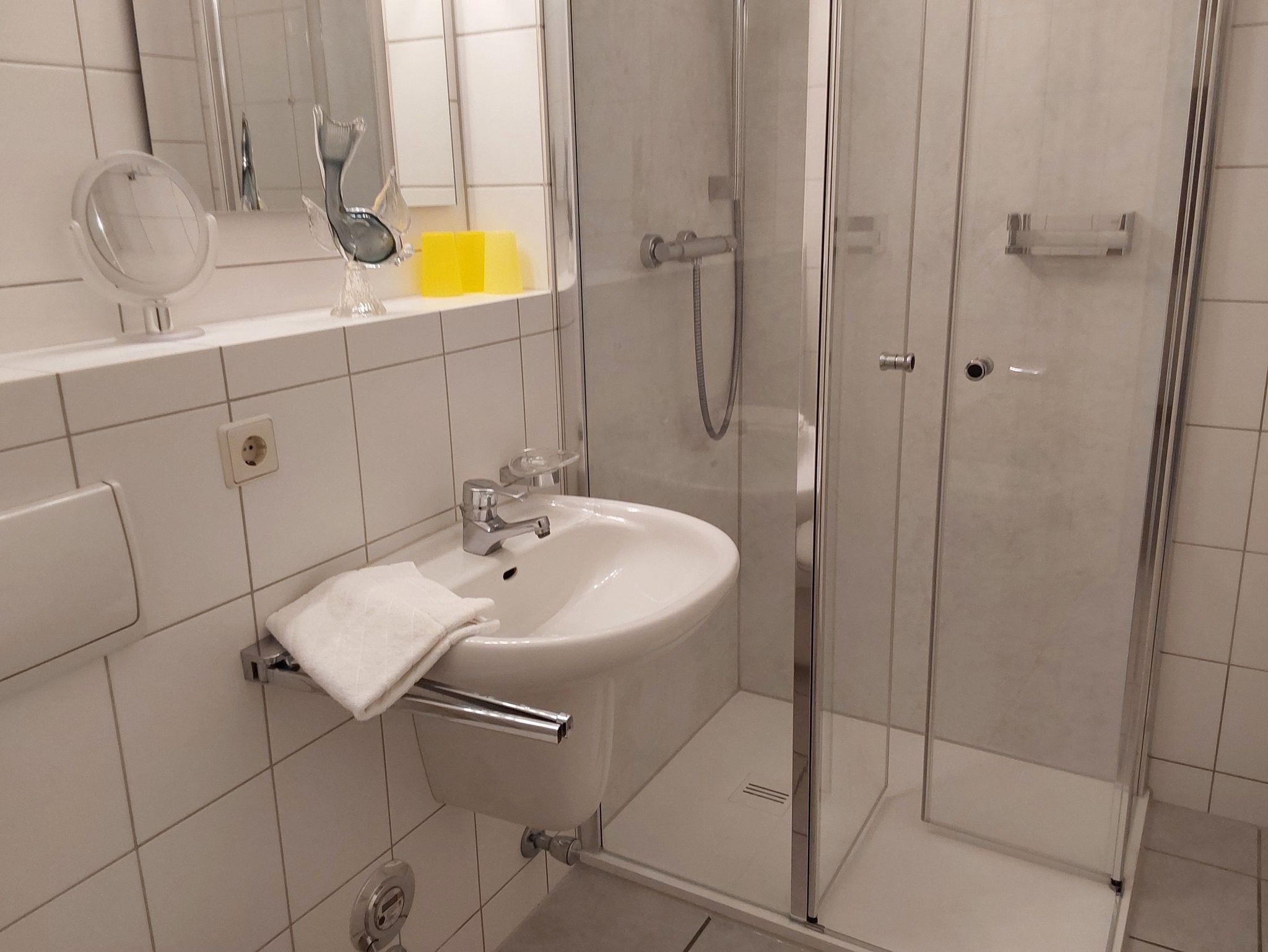 Die FEWO ist für zwei Personen üppig groß und insgesamt gut ausgestattet. Die fehlende Spülmaschine fällt bei zwei Personen kaum ins Gewicht, das fehlende W-Lan ist nicht mehr zeitgemäß. Auch die weißen Plastikstühle auf den Balkonen sollten einmal erneuert werden.