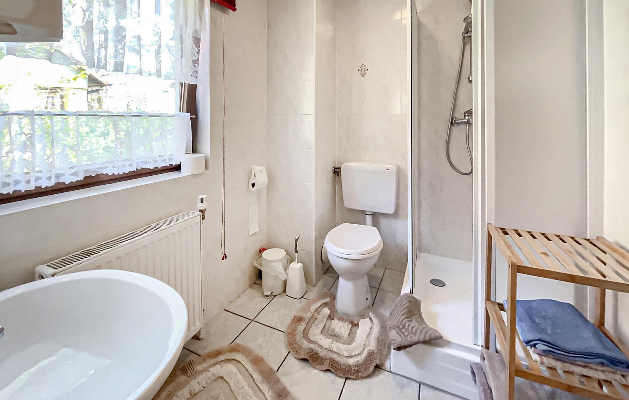 Badeværelse (nr. 1) - WC. Varmt og koldt vand. Bruser