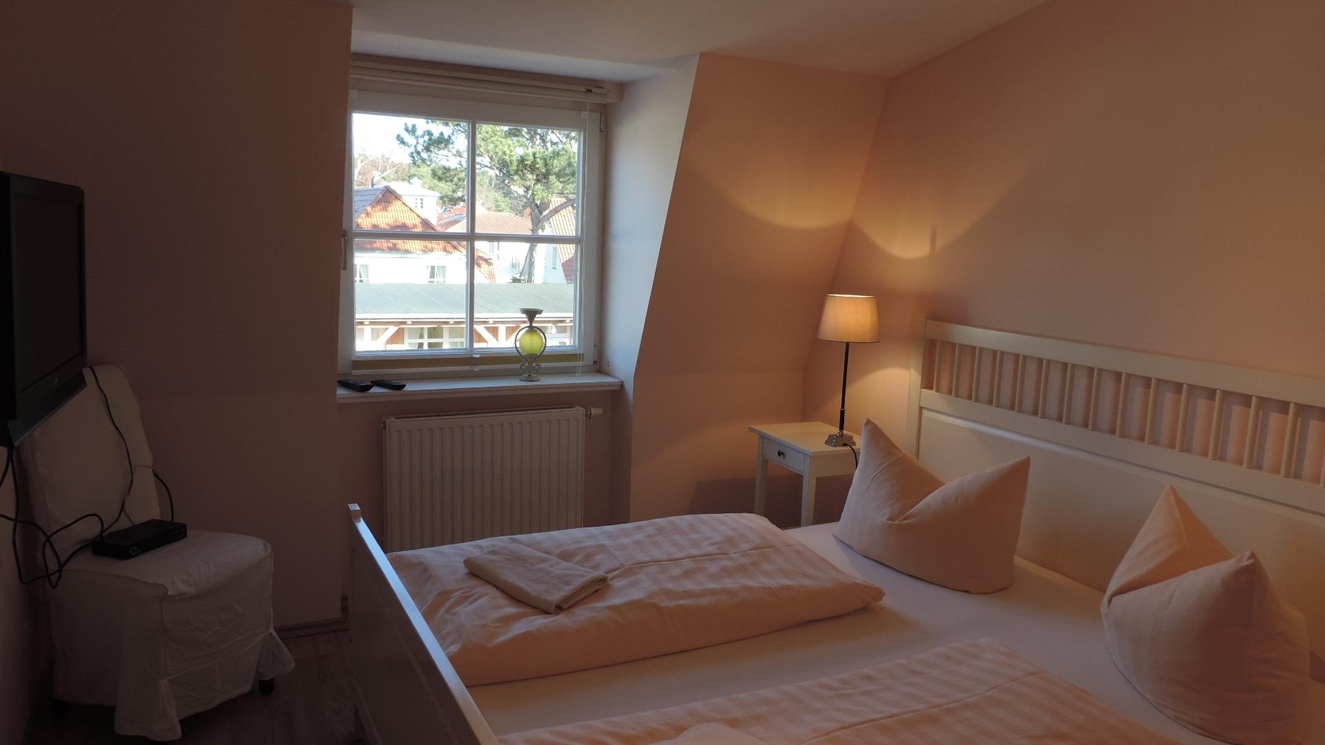 Das Haus befindet sich im Zentrum von Dierhagen Strand, nur 200 m von der Ostsee entfernt. Das Appartement 5 befindet sich im 2.Stock links. Es ist 55 m² groß und mit einem kombinierten Wohn-Essbereich und zwei Schlafzimmern ausgestattet. Das Appartement verfügt über einen Südbalkon mit Akazienholzmöbeln.