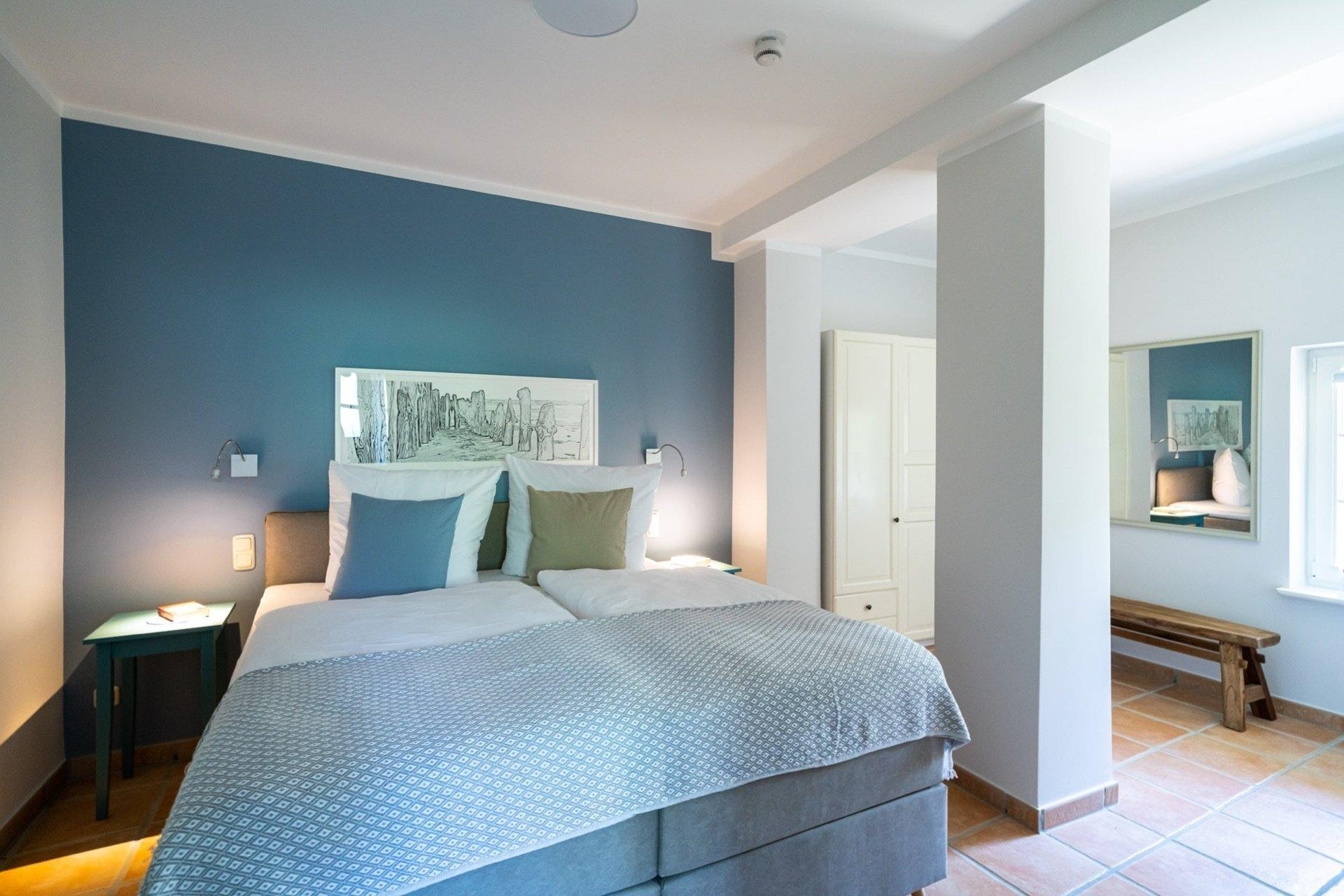 Das Strandhaus Düne 19 begeistert durch modernes Beachhouse-Flair mit hochwertiger und liebevoller Ausstattung.Die Ferienwohnung "Gelassenheit" mit moderner Küche, kuscheliger Sitzecke und hochwertigen Boxspringbetten für einen erholsamen Schlaf lässt keine Wünsche offen.In drei Schlafzimmern mit jeweils eigenem Bad findet jeder seinen Platz.Genießen Sie Ihr Frühstück auf der Dachterrasse, entspannen Sie auf der Sonnenterrasse, erholen Sie sich nach dem Strandspaziergang in der Sauna oder verbringen Sie wunderschöne Stunden am Kamin.Ihr Fahrrad steht gut geschützt in Ihrer privaten abschließbaren Fahrradgarage mit Lademöglichkeit bereit, um die wunderschöne Umgebung zu entdecken.