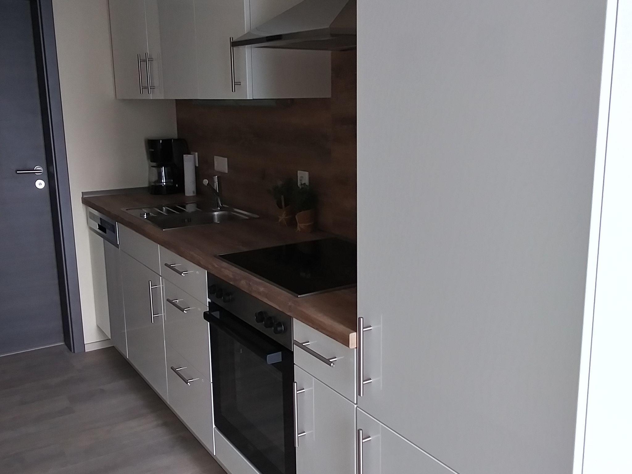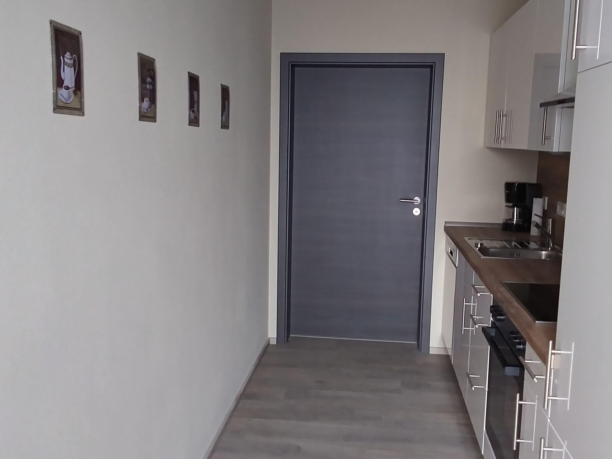 Die ca. 60 qm² große Wohnfläche verfügt über eine voll ausgestattete, vom Wohnraum abgetrennte Küche mit Geschirrspüler, E-Herd mit Ceranfeld, Backofen, Dunstabzugshaube, Kühlschrank mit kleinem Gefrierfach, Mikrowelle, Wasserkocher, Toaster, Filterkaffeemaschine und Reinigungsutensilien. Besteck und Geschirr sind natürlich vorhanden.