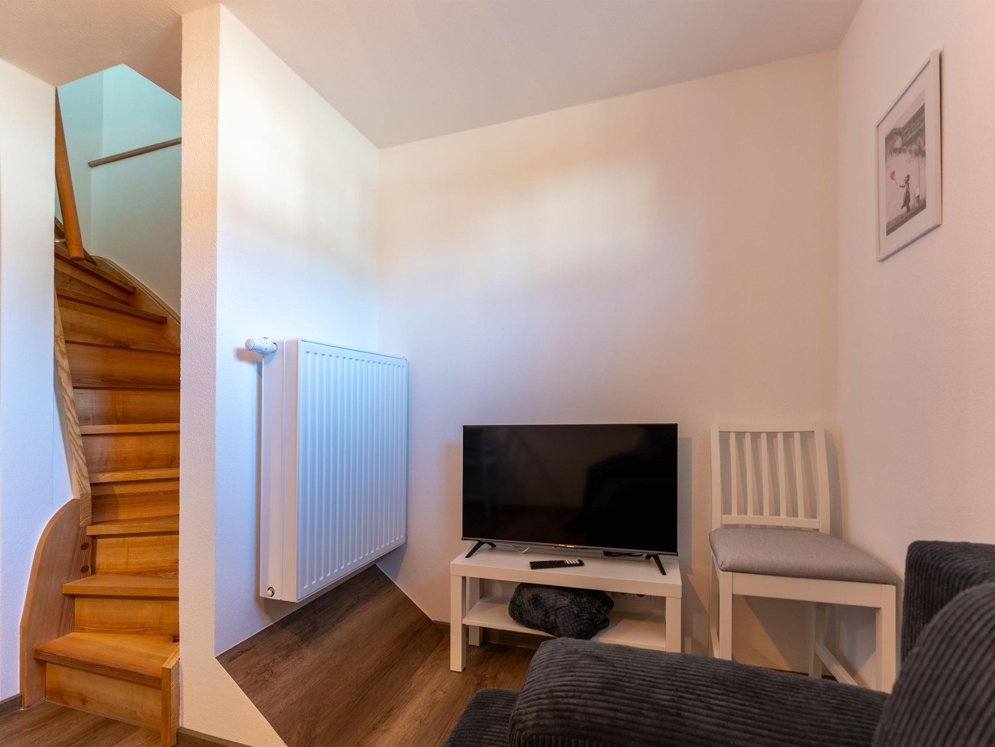 Das Wohnzimmer hat ein Sofa mit einer Ausziehfunktion, das als zusätzliche Schlafmöglichkeit genutzt werden kann (140x200cm).