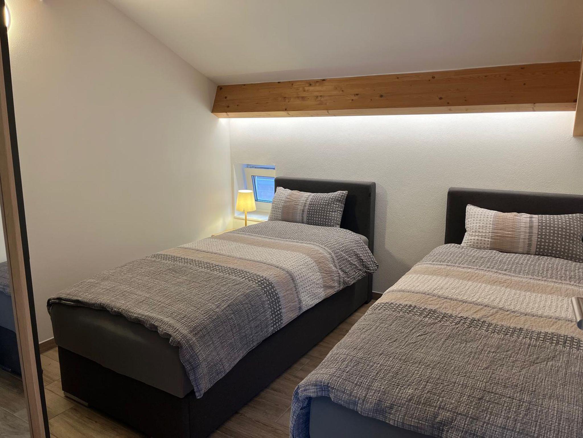Die Ferienwohnung bietet Platz für maximal 4 Personen (plus 1 Kind auf dem Sofa) und verfügt über zwei Schlafzimmer mit Doppelbetten, die auch einzeln gestellt werden können. Das moderne Badezimmer ist mit Dusche, WC, Waschbecken, Waschmaschine und Trockner ausgestattet. Die voll ausgestattete Küche umfasst Backofen, Kühlschrank mit Gefrierfach, Mikrowelle, Spülmaschine, Filterkaffeemaschine, Wasserkocher, Toaster, Eierkocher und alle notwendigen Küchenutensilien. Im offenen Wohnbereich befinden sich ein Fernseher und ein Sofa. WLAN ist kostenlos verfügbar. Ein Parkplatz sowie eine Unterstellmöglichkeit für Fahrräder stehen ebenfalls zur Verfügung.