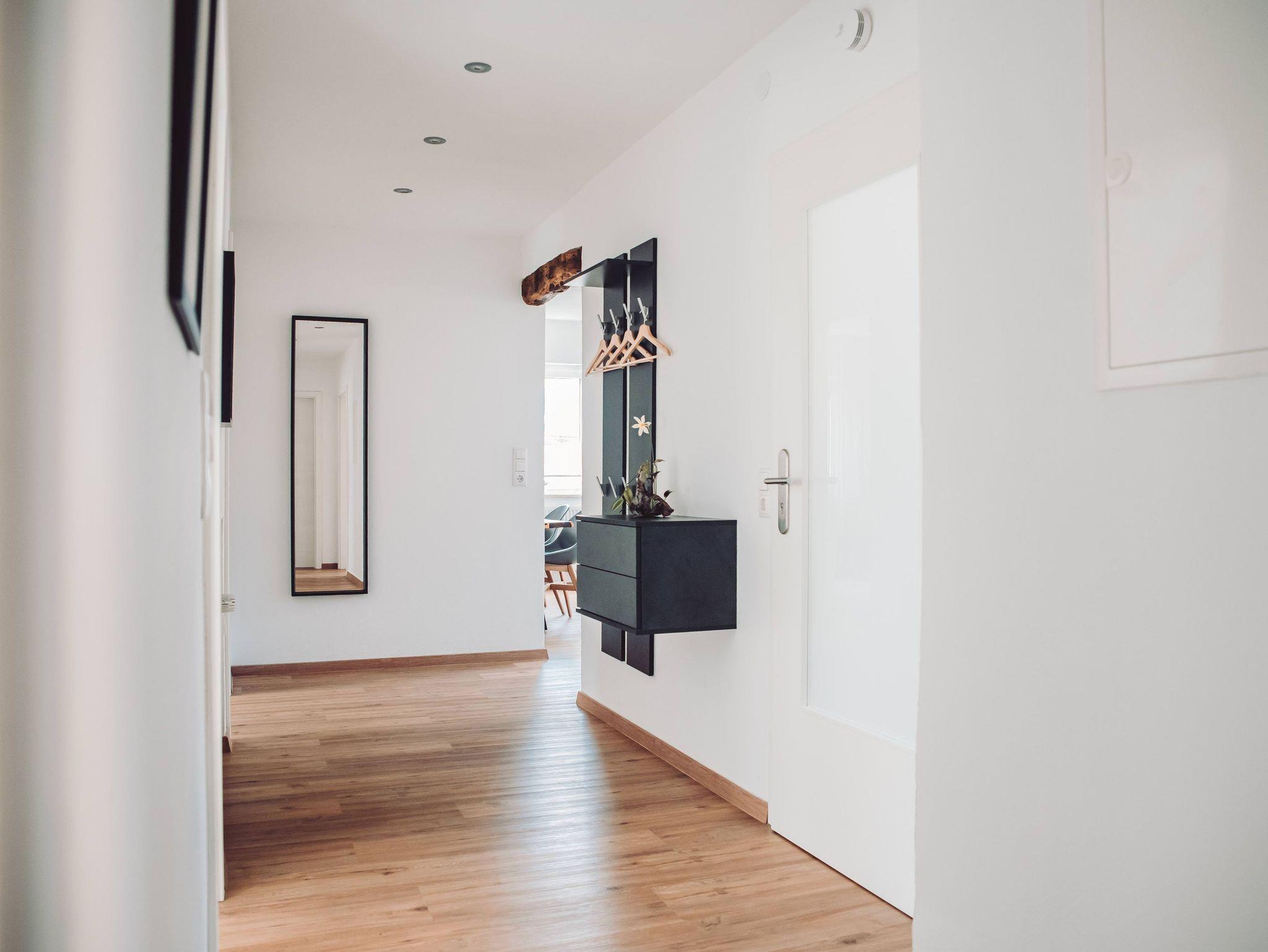 Die Ferienwohnung Urmel befindet sich mit ca. 100 m² in der 1.Etage. Sie besteht aus einer hellen Küche, einem großzügigem Flur, zwei Schlafzimmern, einem Wohnschlafzimmer und einem Bad. Sie bietet Platz für bis zu 6 Personen.