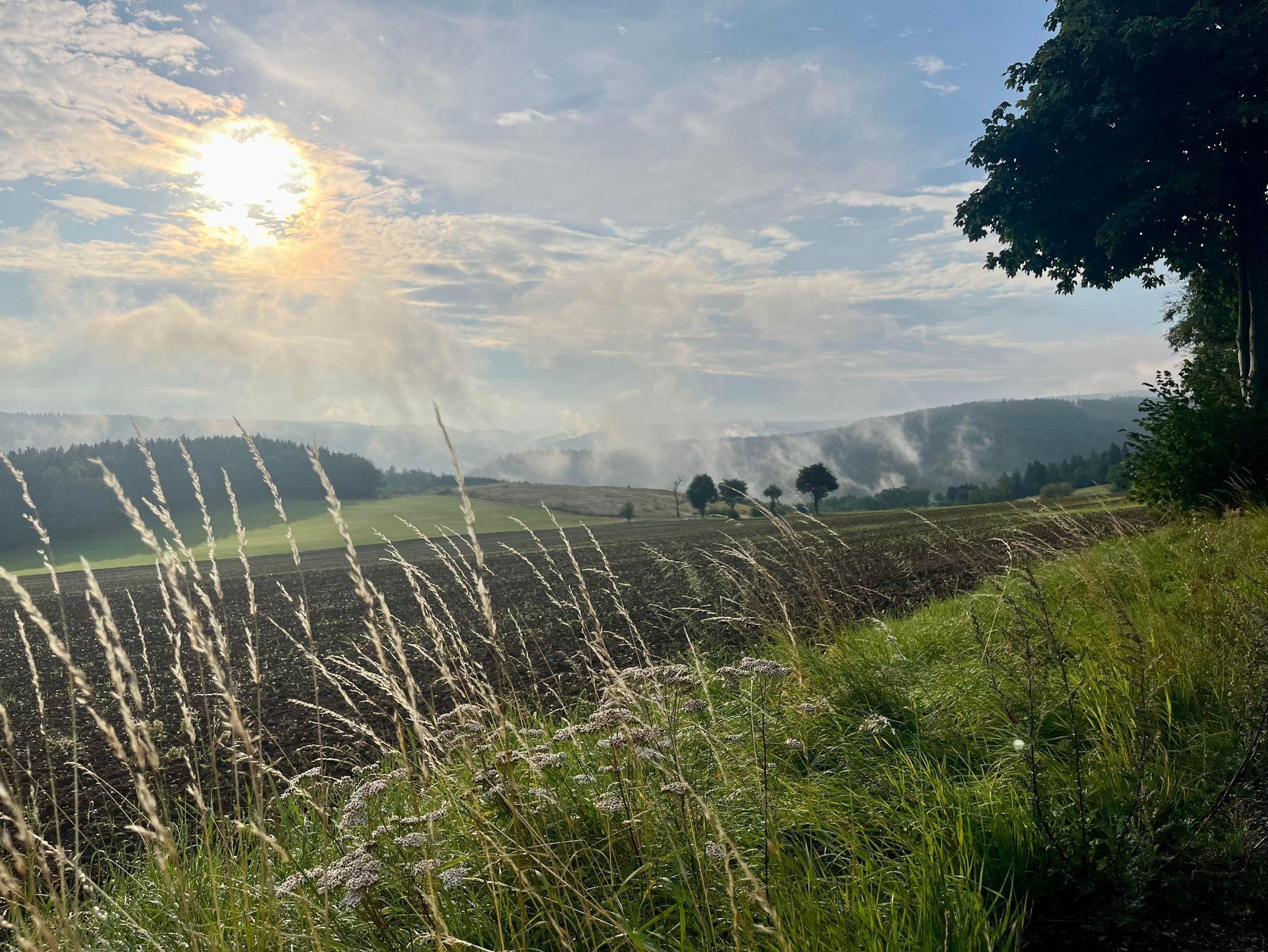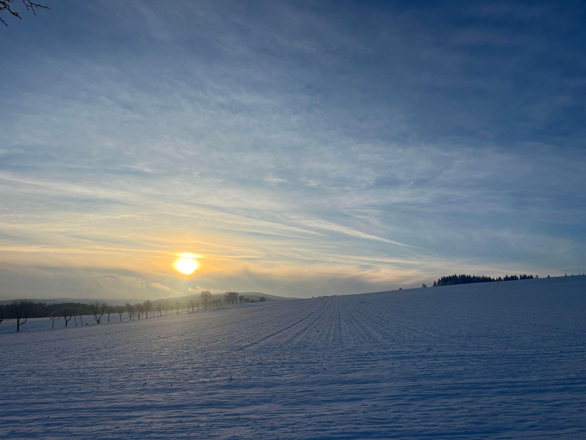 Unsere Ferienwohnung bietet alles für einen rundum erholsamen Aufenthalt. Im gemütlichen Schlafzimmer schlafen Sie entspannt im Doppelbett – auf Wunsch auch mit Platz für ein Babybett. Der offene Wohn- und Essbereich lädt zum Verweilen ein: ob Serienabend auf der ausziehbaren Couch oder ein entspanntes Essen – hier fühlt man sich schnell wie zu Hause. Die Küche ist voll ausgestattet mit Herd, Backofen, Mikrowelle, Geschirrspüler – perfekt für Ihre Lieblingsgerichte. Das moderne Bad mit Regendusche sorgt für frische Momente, eine Waschmaschine steht bei längeren Aufenthalten zur Verfügung. Draußen erwarten Sie eine sonnige Terrasse mit Grillmöglichkeit, ein kleines Beet zum Ernten und schattige Plätze unter alten Obstbäumen – ideal zum Lesen, Träumen oder Picknicken. Starten Sie den Tag mit Blick ins Grüne – auf Wunsch mit Brötchenservice und frischen Eiern. Im Winter stehen gegen einen Aufpreis Schlitten und Schneeschuhe bereit, im Sommer Fahrräder und Walkingstöcke.