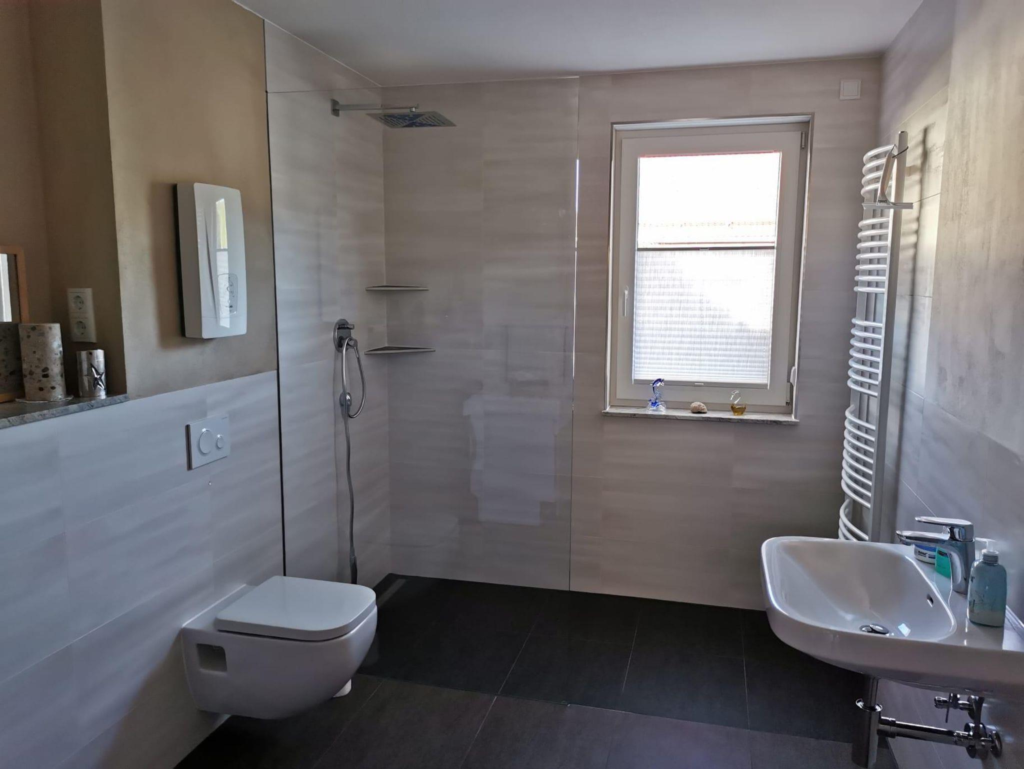 Die neugebaute Ferienwohnung mit ca. 60qm verfügt über eine Küche mit integriertem Eingangsbereich. (Kühlschrank, Mikrowelle, Herd mit Backofen, Kaffeemaschine, Wasserkocher, Spülmaschine) Das Badezimmer bietet eine edle bodenebene Glasdusche mit Regenfallfunktion, Waschbecken, WC. Das Wohnzimmer mit Sofa inkl. Schlaffunktion für 2 Personen und Fernseher inkl. DVD-Player lädt zum Verweilen ein. Das Schlafzimmer verfügt über ein 1,80m x 2,00m großes Doppelbett und ein Einzelbett 0,90mx2,00m. Außerdem besteht die Möglichkeit 1 Babybett aufzustellen. Elektrische Rollläden und Fussbodenheizung sind in jedem Raum vorhanden.