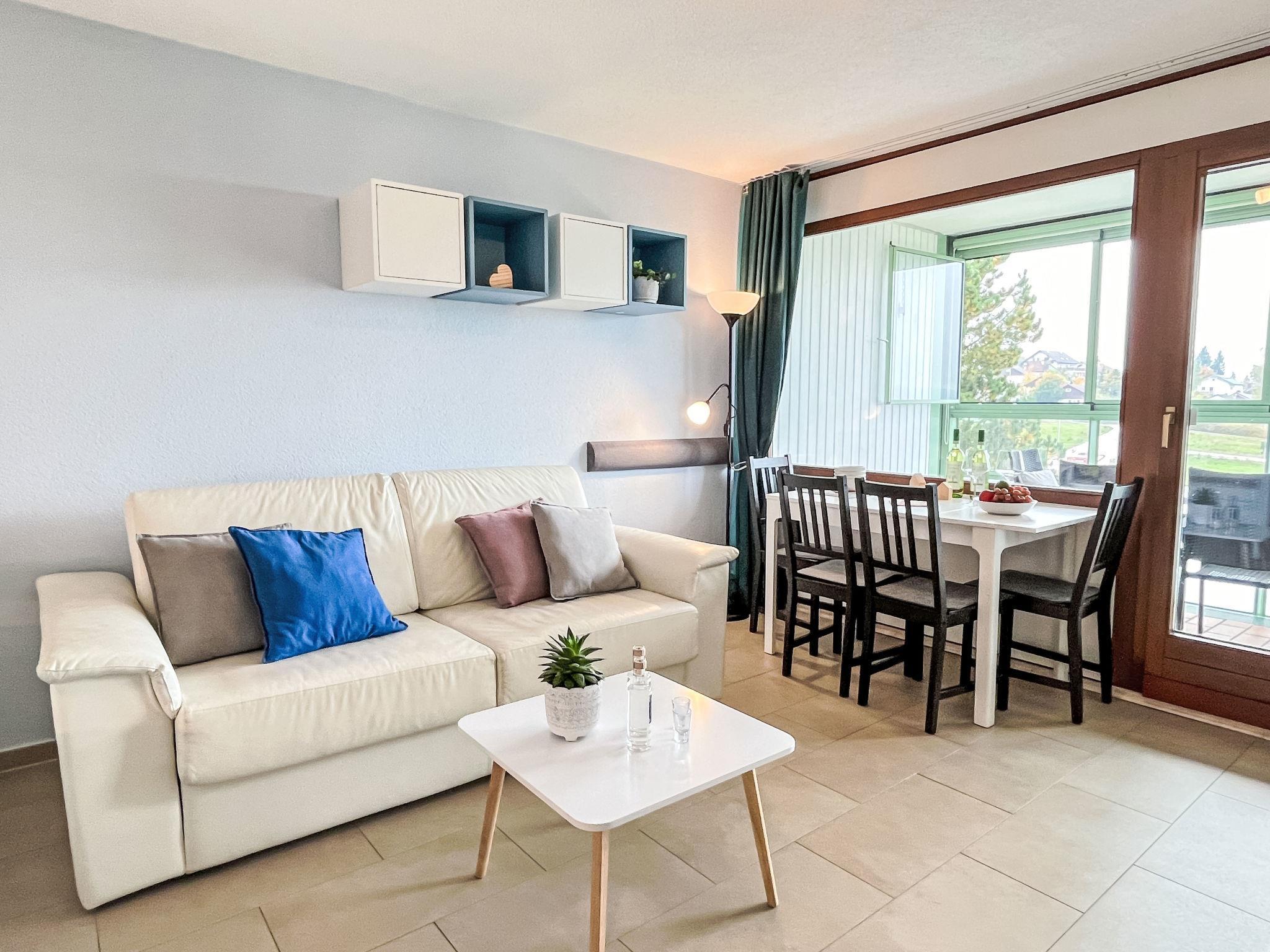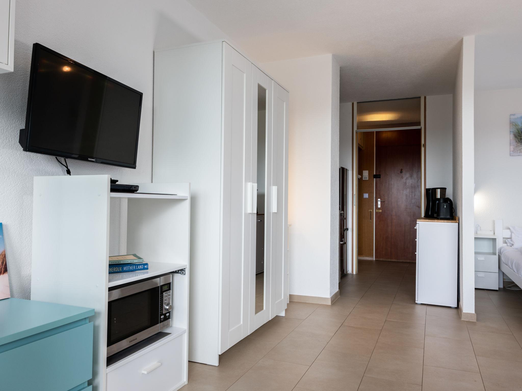 "Sonnenschein (B 110)", 1-room apartment 37 m2 on 3rd floor. Object suitable for 2 adults + 2 children. Modern and cosy furnishings: living/sleeping room with 1 sofabed (140 cm, length 190 cm), 1 double bed (160 cm, length 190 cm), satellite TV (flat screen). Kitchenette (oven, dishwasher, 4 ceramic glass hob hotplates, toaster, kettle, microwave, electric coffee machine). Shower/WC. Balcony. Balcony furniture. Facilities: children's high chair (extra). Parking (1 car) at the house. Please note: non-smokers only. The balcony is glased. Bookings accepted for holiday purposes only.