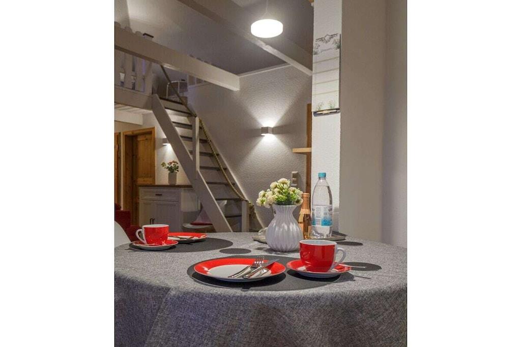 Mellemetage: (svalegang soveværelse) På 1. etage: (entre(), Stue(bibliotek, Fjernsyn, CD-afspiller, stereoanlæg), Køkken(, , , , , , , , , tekøkken, toilet, bibliotek, dobbeltseng, Fjernsyn, spisebord, kakkelovn, stereoanlæg, kogeplade, elkedel, brødrister, kaffemaskine, ovn, mikrobølgeovn, opvaskemaskine , køleskab, fryser, bruser, håndvask, vaskemaskine, havemøbler, føntørrer, insektnet), soveværelse(, , dobbeltseng), drying room(, vaskemaskine)) , , , Internetadgang, tørretumbler, vaskemaskine, balkon(, balkon), varme, parkering, Vaskeripakke mod et gebyr