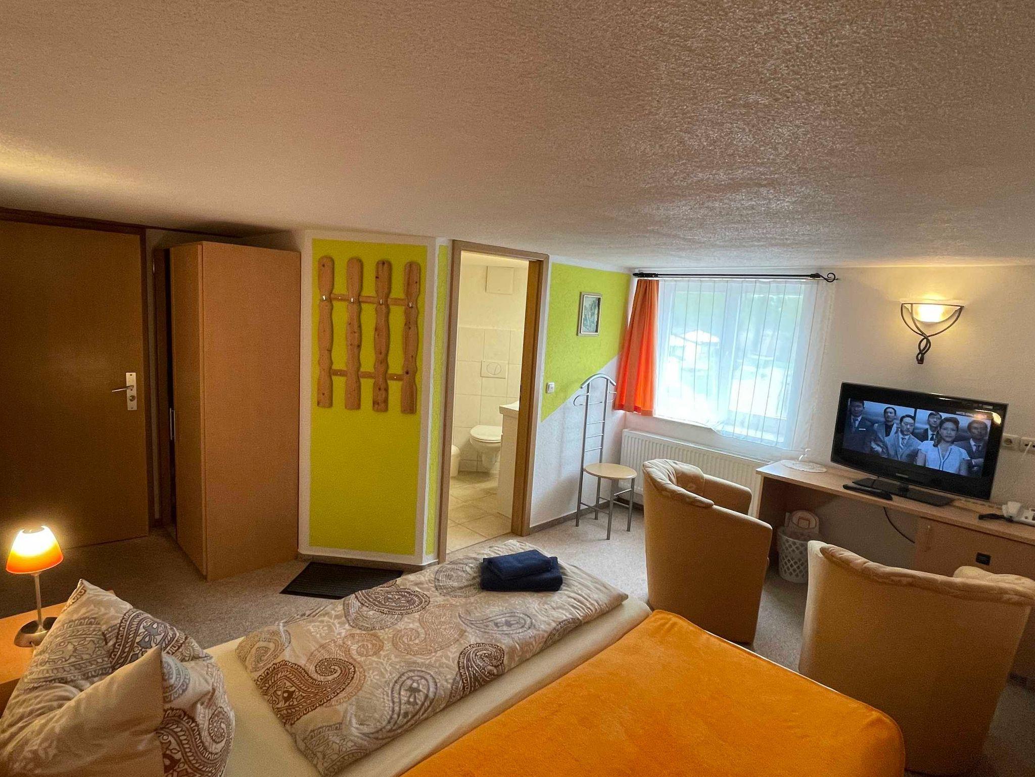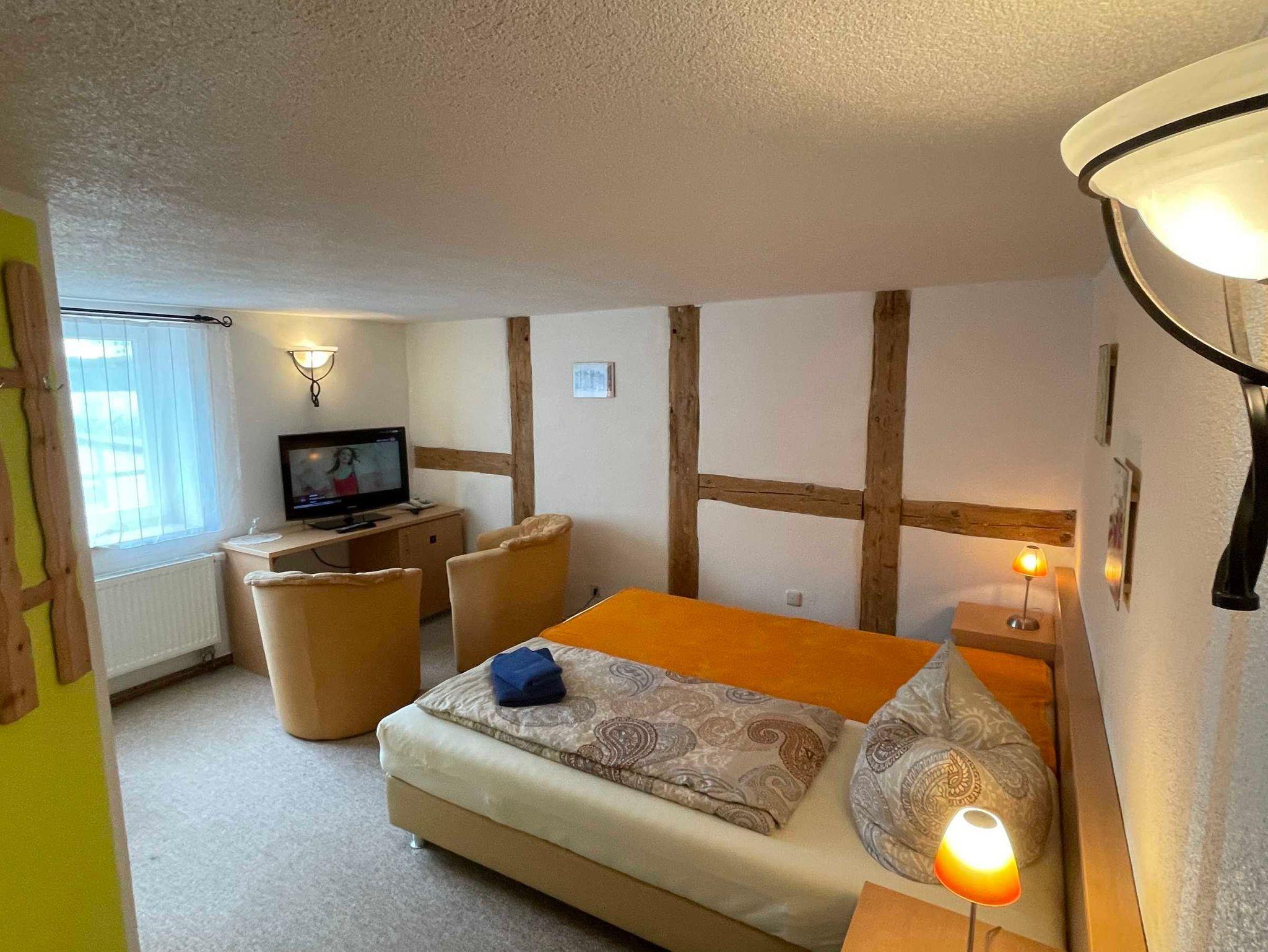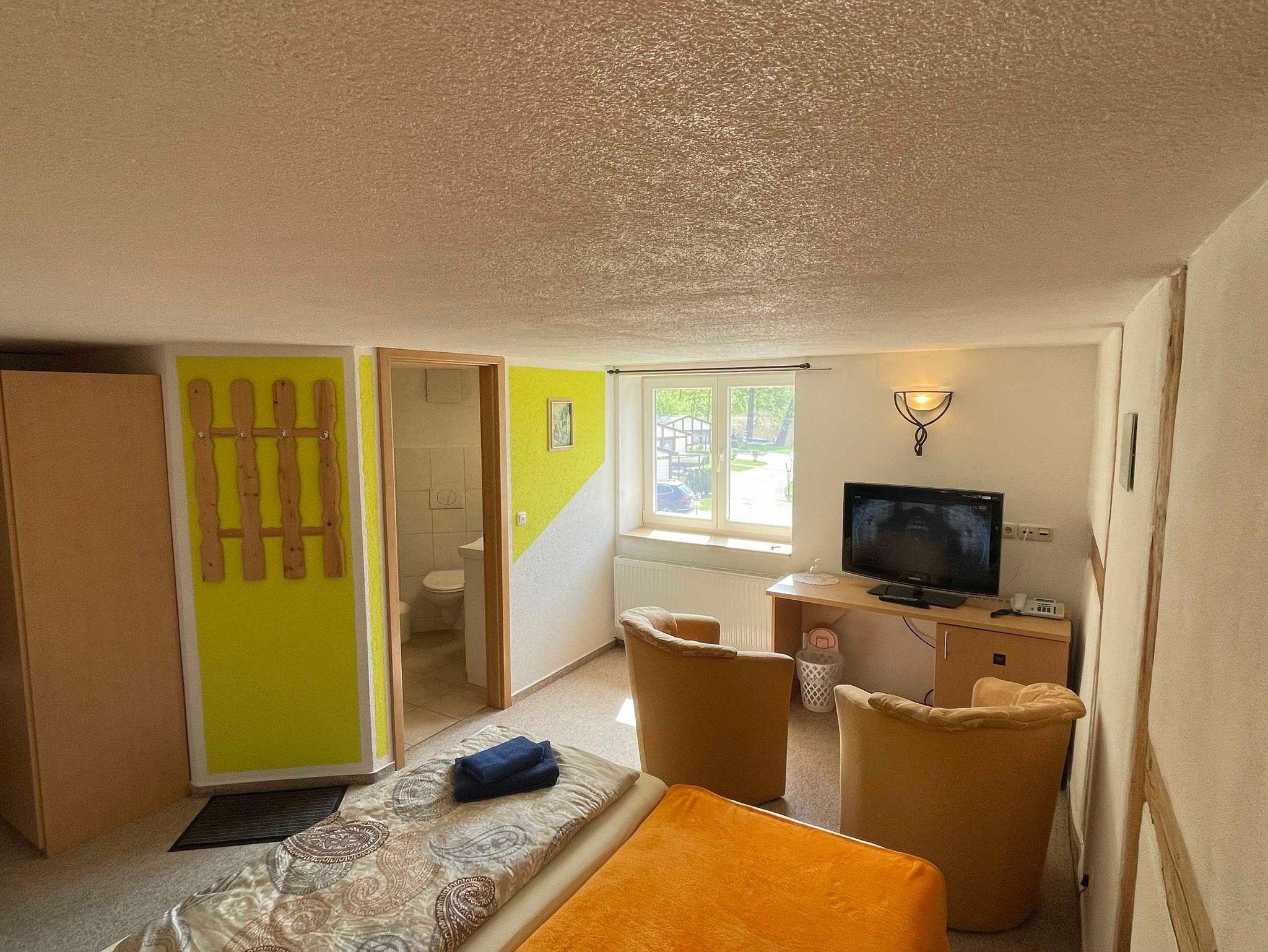 DZ mit Blick auf den Dobbertiner See ,sind ausgestattet mit Doppelbett, auch einzel stellbar, LCD-HDTV, Telefon, Internet, Minibar (auf Wunsch wird aufgefüllt), Schreibtisch, DU/WC, 2 Sessel,