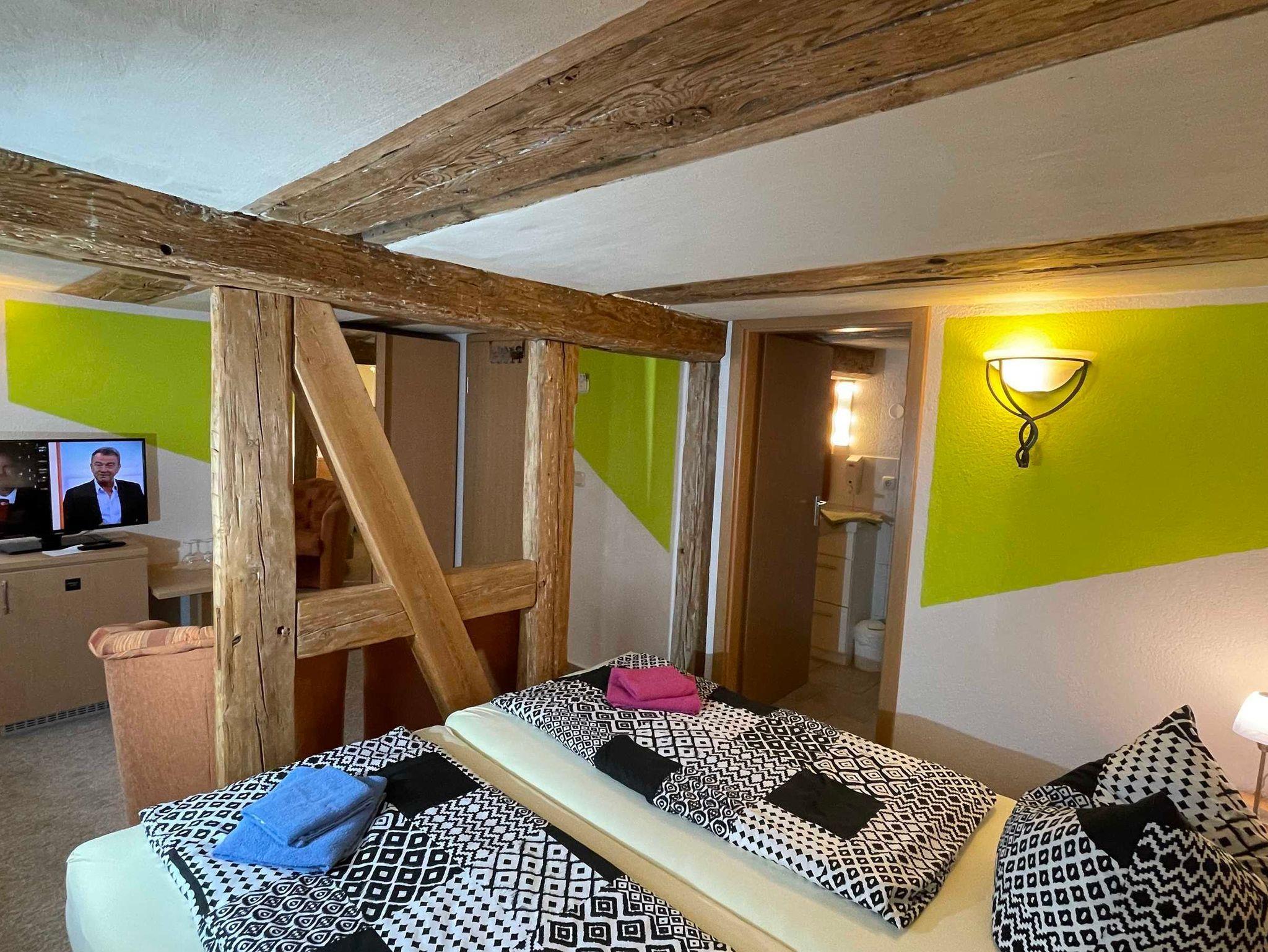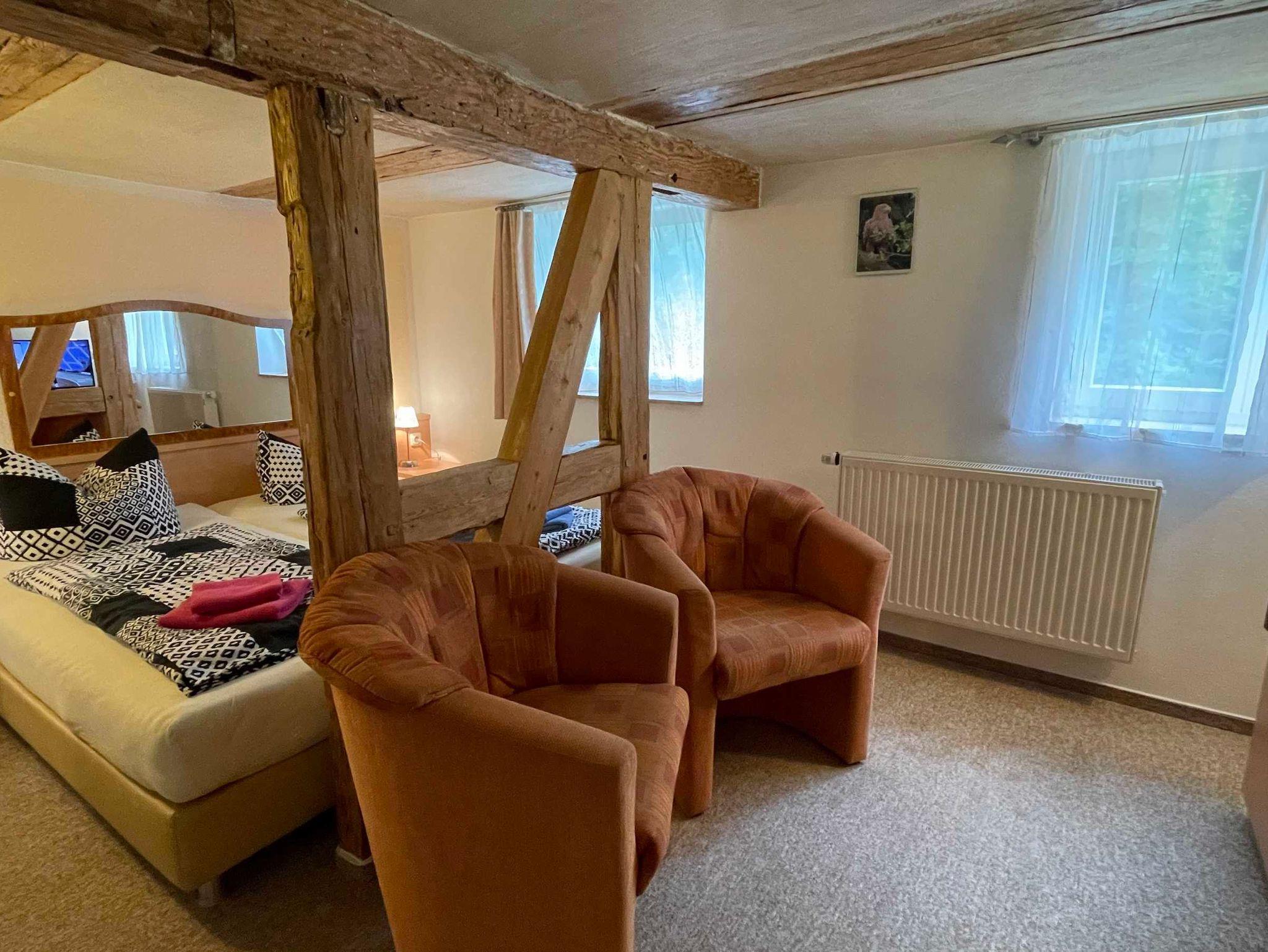 Harmonisch abgestimmte Einrichtung, historische Zimmer mit Raumhöhe 2.40 m, Blick auf den Fluss und Fischtreppe,