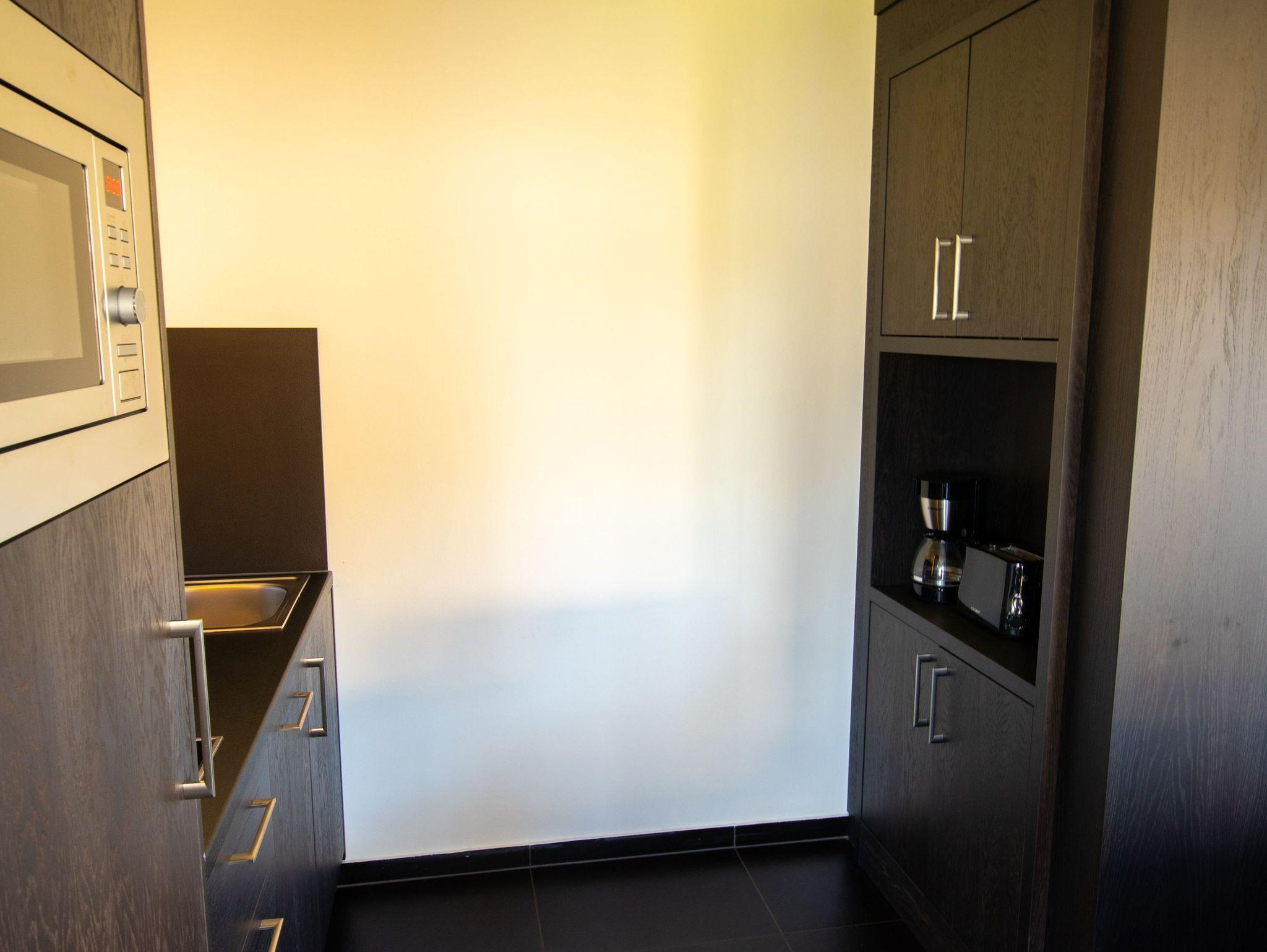 Im Landhaus Typ V findest du das perfekte Zuhause für die ganze Familie. Auf 80 m², verteilt über zwei Etagen, bietet dieses Haus viel Platz für bis zu 4 Personen. Das Erdgeschoss empfängt euch mit einem hellen, einladenden Wohnzimmer, in dem ein gemütliches Sofa und ein großer TV für entspannte Abende bereitstehen. Die offene Küche ist ideal für Familienmahlzeiten ausgestattet: Mit einem 2-Platten-Herd, Mikrowelle, Kühlschrank, Kaffeemaschine und Wasserkocher kannst du im Handumdrehen Snacks oder ganze Mahlzeiten zubereiten. Für zusätzlichen Komfort sorgt die Spülmaschine ? lästiger Abwasch gehört der Vergangenheit an!