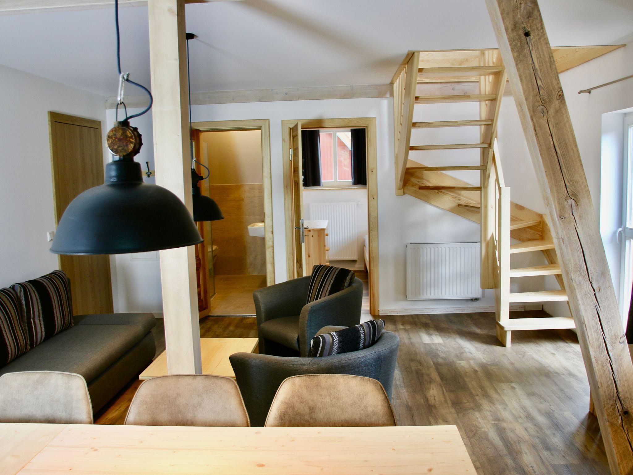 Auf rund 73 m² erwartet Sie im Dachgeschoss unserer charmanten Ferienscheune ein Ort zum Wohlfühlen und Entspannen.