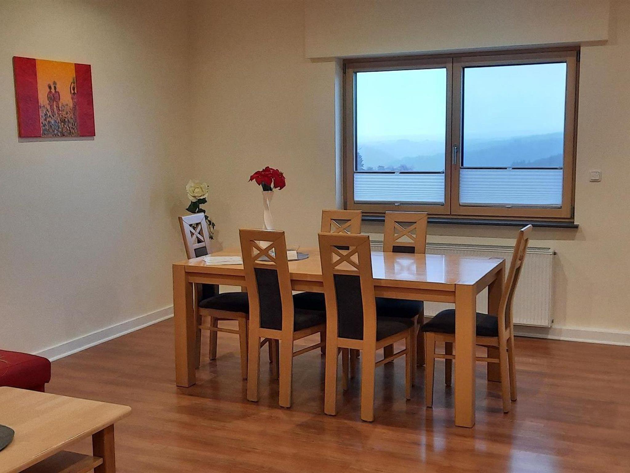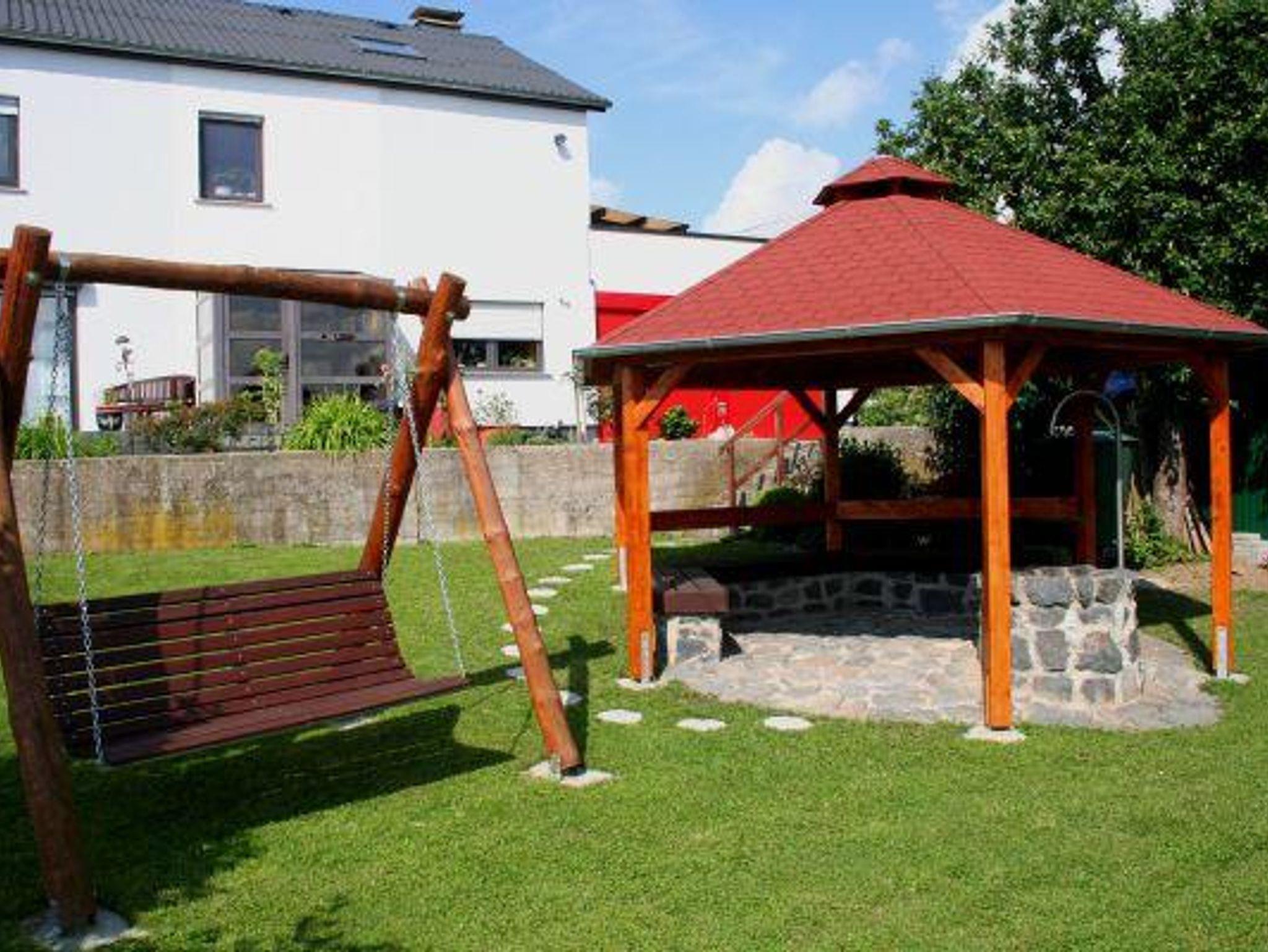 Moderne Nichtraucherwohnung am Ortsrand von Dorweiler. 1. Etag, bis 6 Personen, separater Eingang, 2 Schlafzimmer, Ess-/Wohnzimmer, Küche, Dusche/WC, Zentralheizung, Kinderbett und -stuhl, Parkplatz am Haus, Grillplatz, Liegewiese, überdachter Sitzplatz, Nähe Burg Waldeck und dem romantischen Baybachtal.