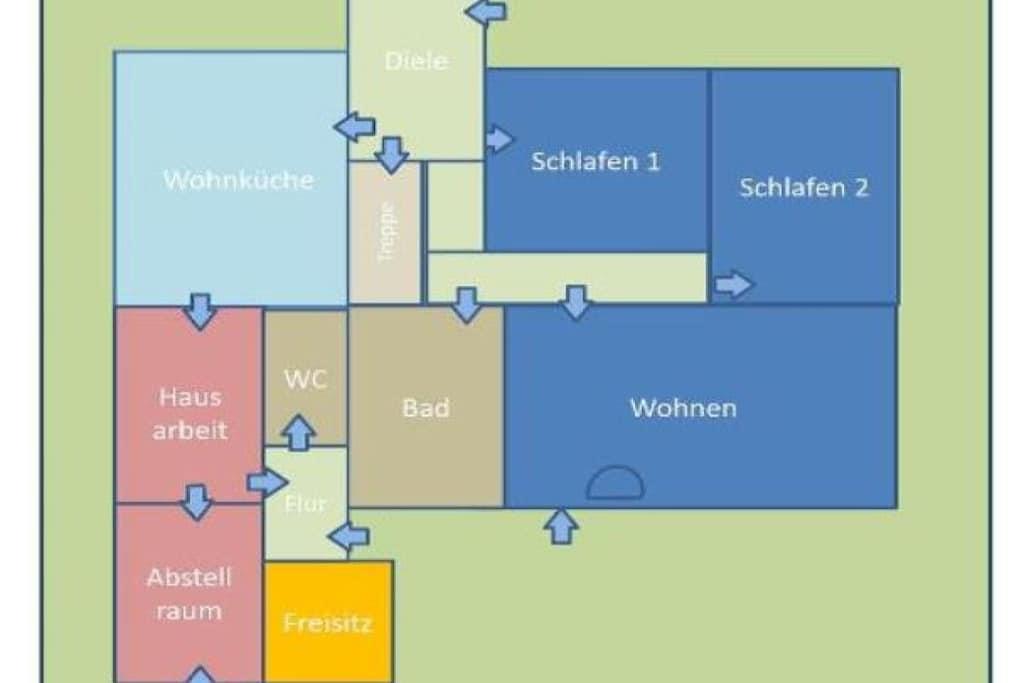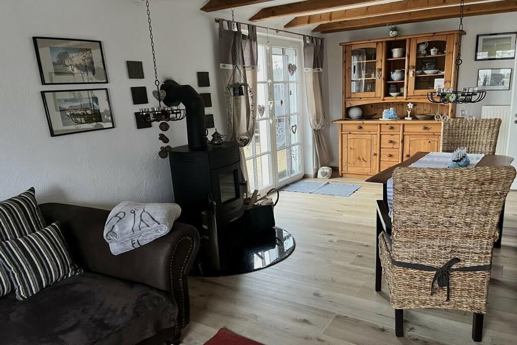 Gemütlich eingerichtetes Ferienhaus in Ostfriesland in wunderschöner Lage zwischen Feldern und Wiesen. Eine Wohnstube mit Kaminofen, 4 Schlafzimmer, eine Wohnküche mit Eßplatz für 6 Personen sowie 2 Badezimmer mit insgesamt 140 m² Wohnfläche sorgen für puren Urlaub. Im Erdgeschoss finden Sie die Wohnküche, ein Wohn-/ Esszimmer mit Ausgang zur Gartenterrasse, zwei Schlafräume mit Doppelbetten, einen Hauswirtschaftsraum, ein Bad mit Wanne und Dusche und ein Gäste WC Im Obergeschoss befindet sich ein großes Schlaf/Kinderzimmer und ein Duschbad. Bei Bedarf ist ein zweites Schlafzimmer im OG möglich. Kinder und Hunde können sich auf dem 1800 qm großen eingezäunten Grundstück nach Lust und Laune austoben. Diverse Spiel- und Klettermöglichkeiten sind vorhanden.
