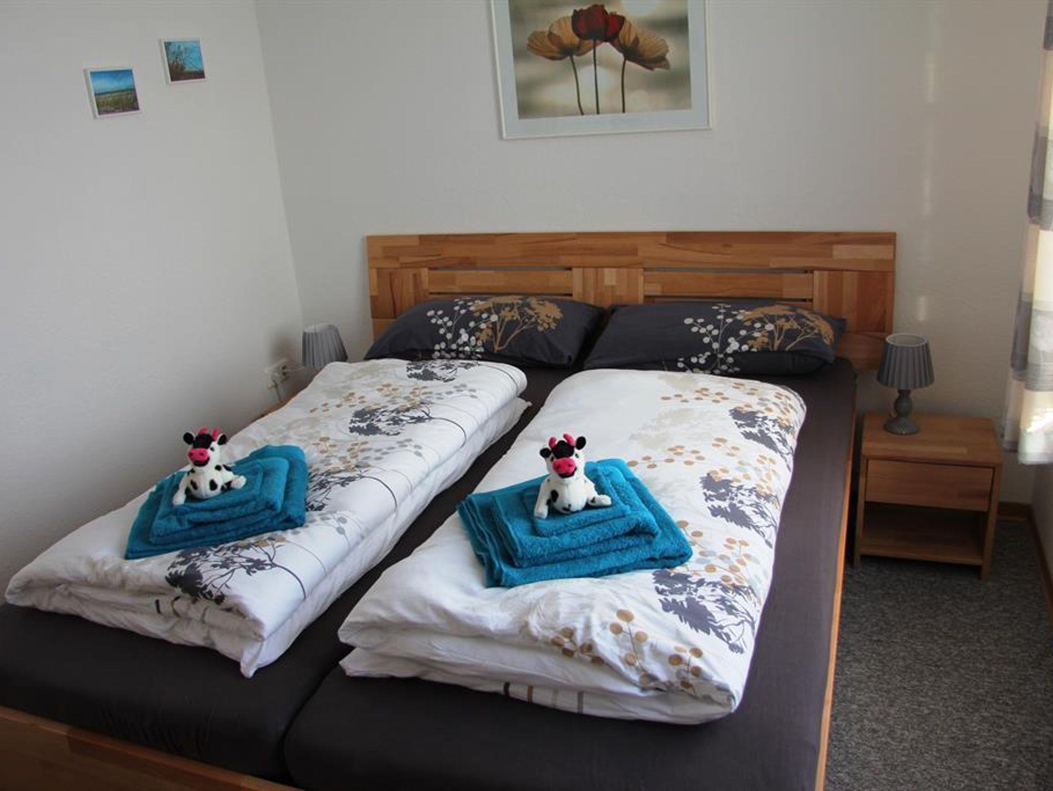 Die Ferienwohnung ist komplett neu renoviert und möbliert. Das Wohnzimmer ist ausgestattet mit einer Sofagarnitur, Flach-Sat-TV, Stereoanlage, Blu-ray-Player, Essecke und den Zugang zur Terrasse. Wlan stellen wir unseren Gästen kostenfrei zur Verfügung. Die separate Küche verfügt über eine Spülmaschine, Kühlschrank, Cerankochfeld, Backofen, Eierkocher, Toaster, Mikrowelle, Filterkaffeemaschine und über eine Cafissimo Kapselmaschine. Das Bad ist mit Dusche und WC ausgestattet. Die Ferienwohnung hat zwei separate Schlafzimmer. Eines mit einem Doppelbett (160 x 200 cm), Schrank und Leselampen. Das Zweite mit einem Schrank und einem Doppelbett (180 x 200 cm).