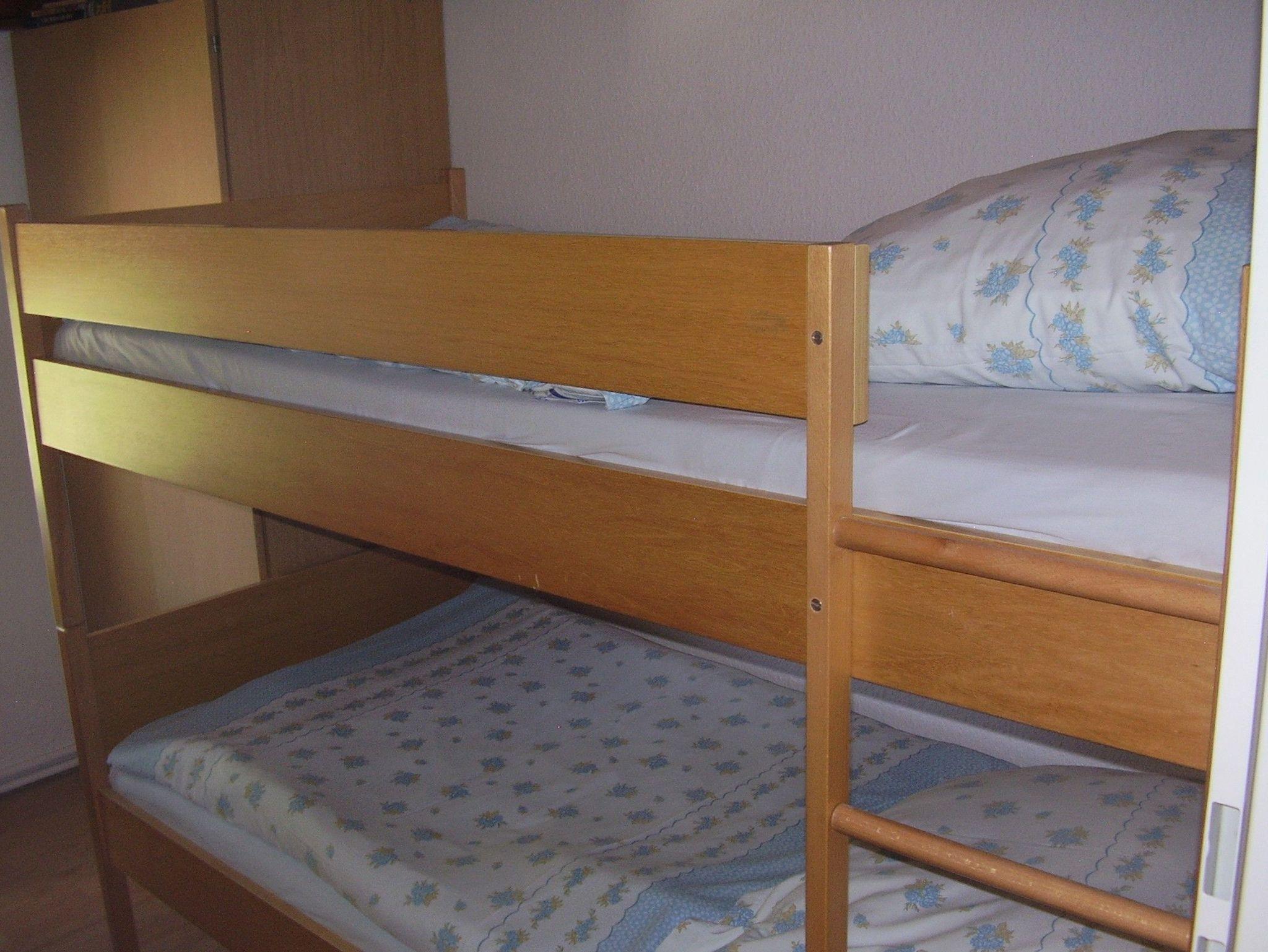 1 Schlafzimmer mit Doppelbett. Babyreisebett muss bei Bedarf mitgebracht werden.