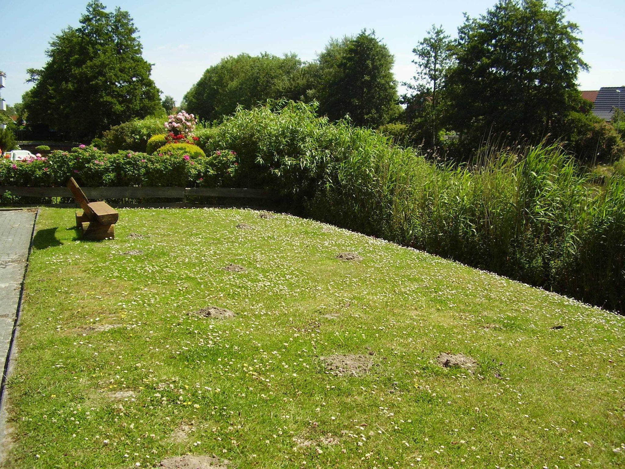 Überdachte Terrasse und Wiese in Südlage direkt zum Siel. Angeln vom Grundstück aus möglich.