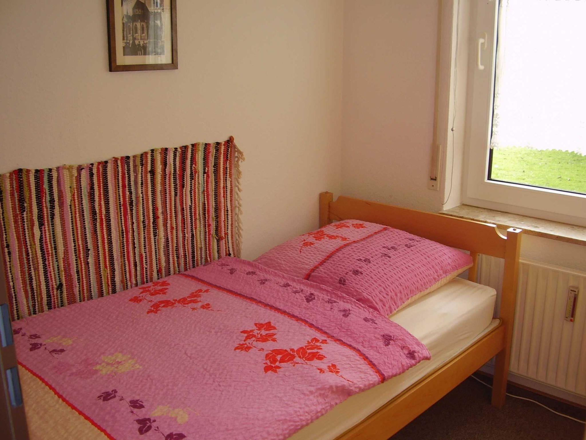 Ein Schlafzimmer mit Doppelbett (160x200). Ein Schlafzimmer mit Einzelbett.
