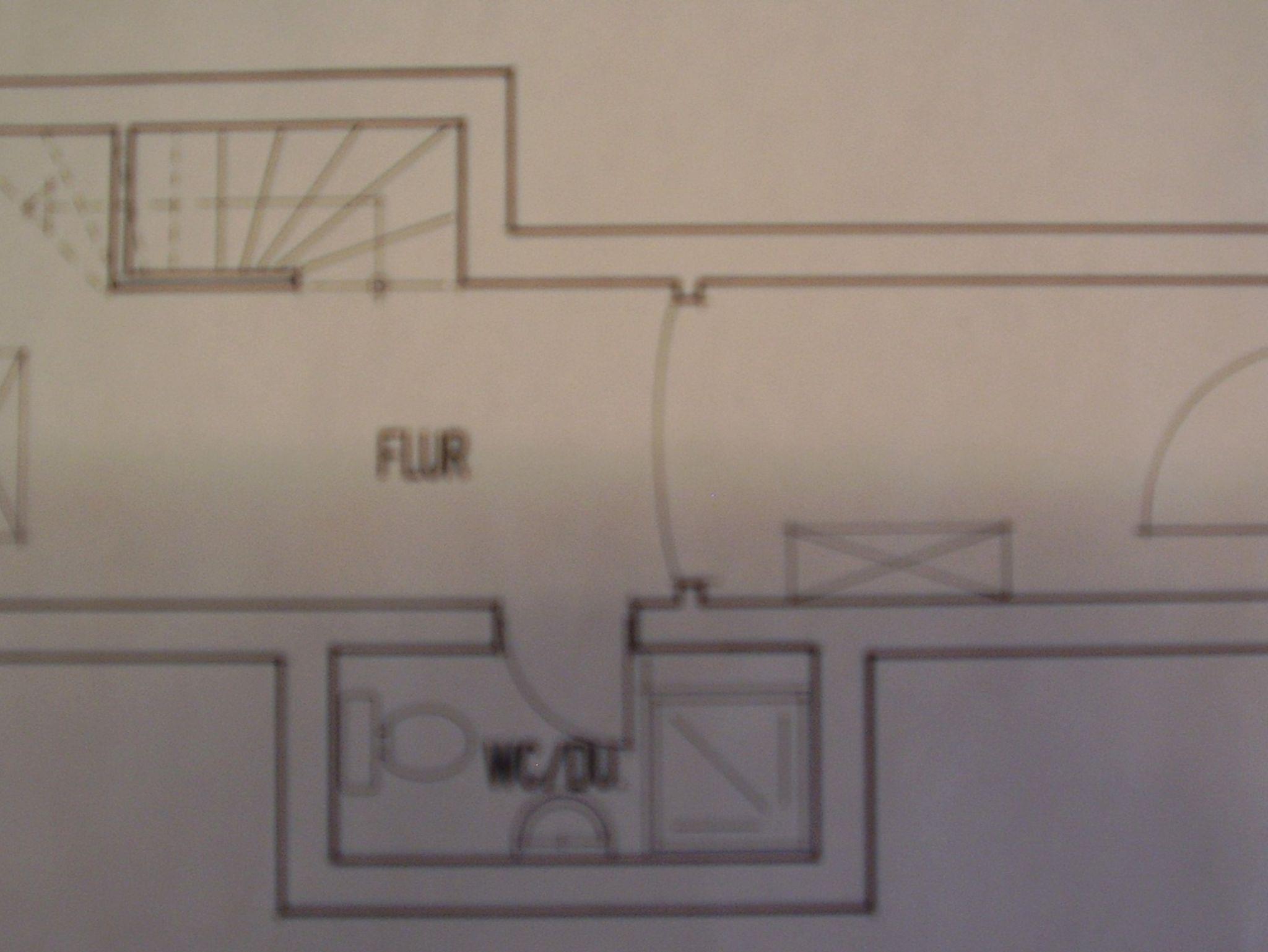 Erdgeschoss: Wohnungszugang und 1 Badezimmer mit Dusche und WC.