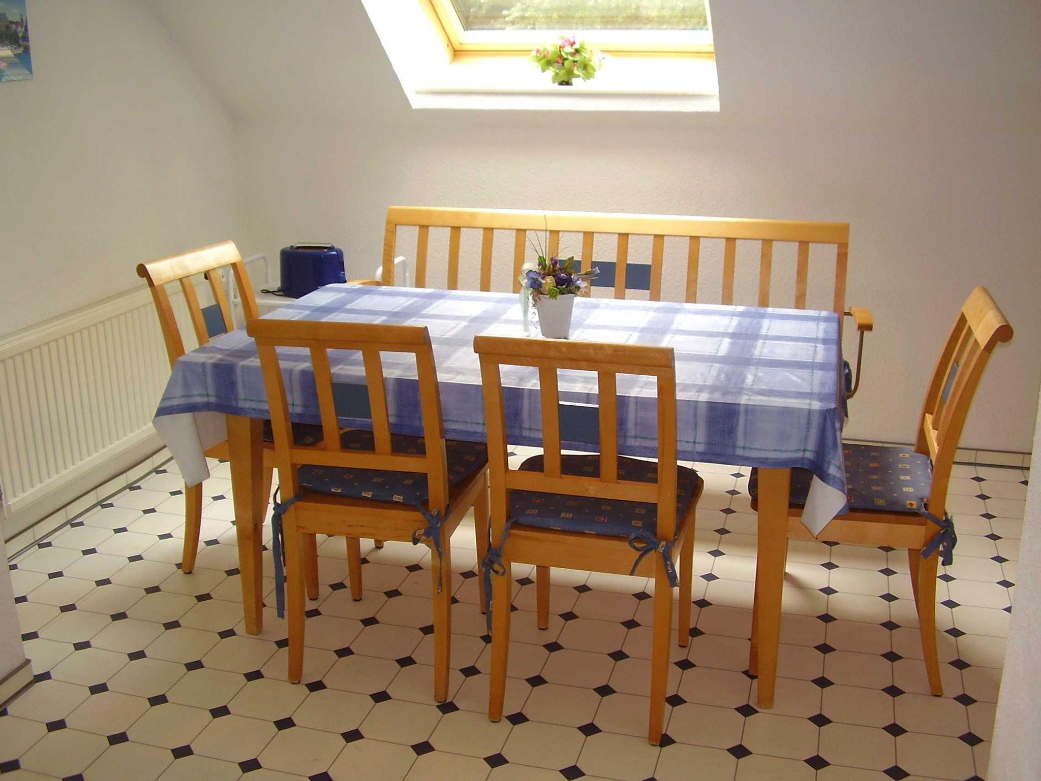 Obergeschoss: Gemütliches Wohnzimmer mit SAT-TV und Stereoanlage. Offener Ess- und Küchenbereich mit EBK mit Vier-Plattenherd und Backofen, Geschirrrspülmaschine, Microwelle, etc. und grosszügigem Essbereich. 2 Schlafzimmer jeweils mit Doppelbetten, 1 Schlaf- oder Kinderzimmer mit 3 Einzelbetten. Duschbad und separates WC.