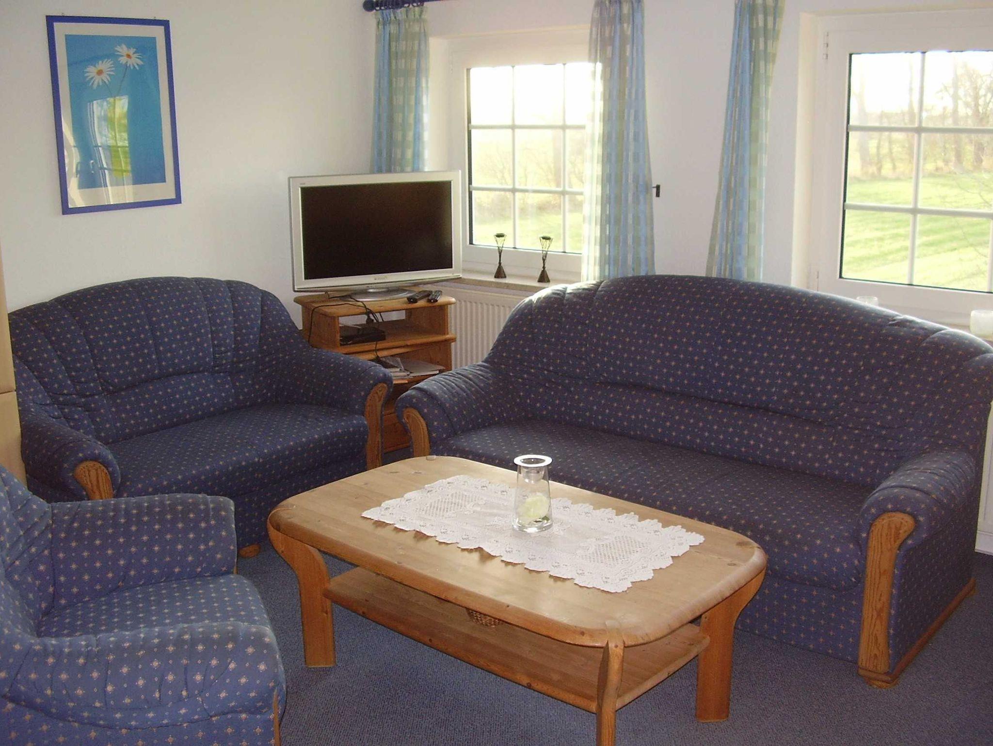 Obergeschoss: Ansprechender Wohn- und Essbereich mit Sitzgruppe und Flachbild-TV, Einbauküche mit einem VierPlattenHerd mit Backofen, Kühlschrank, Mikrowelle und allen erforderlichen Elektrogeräten.