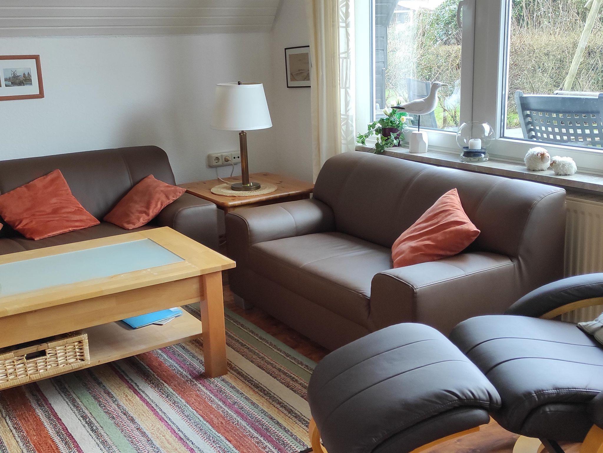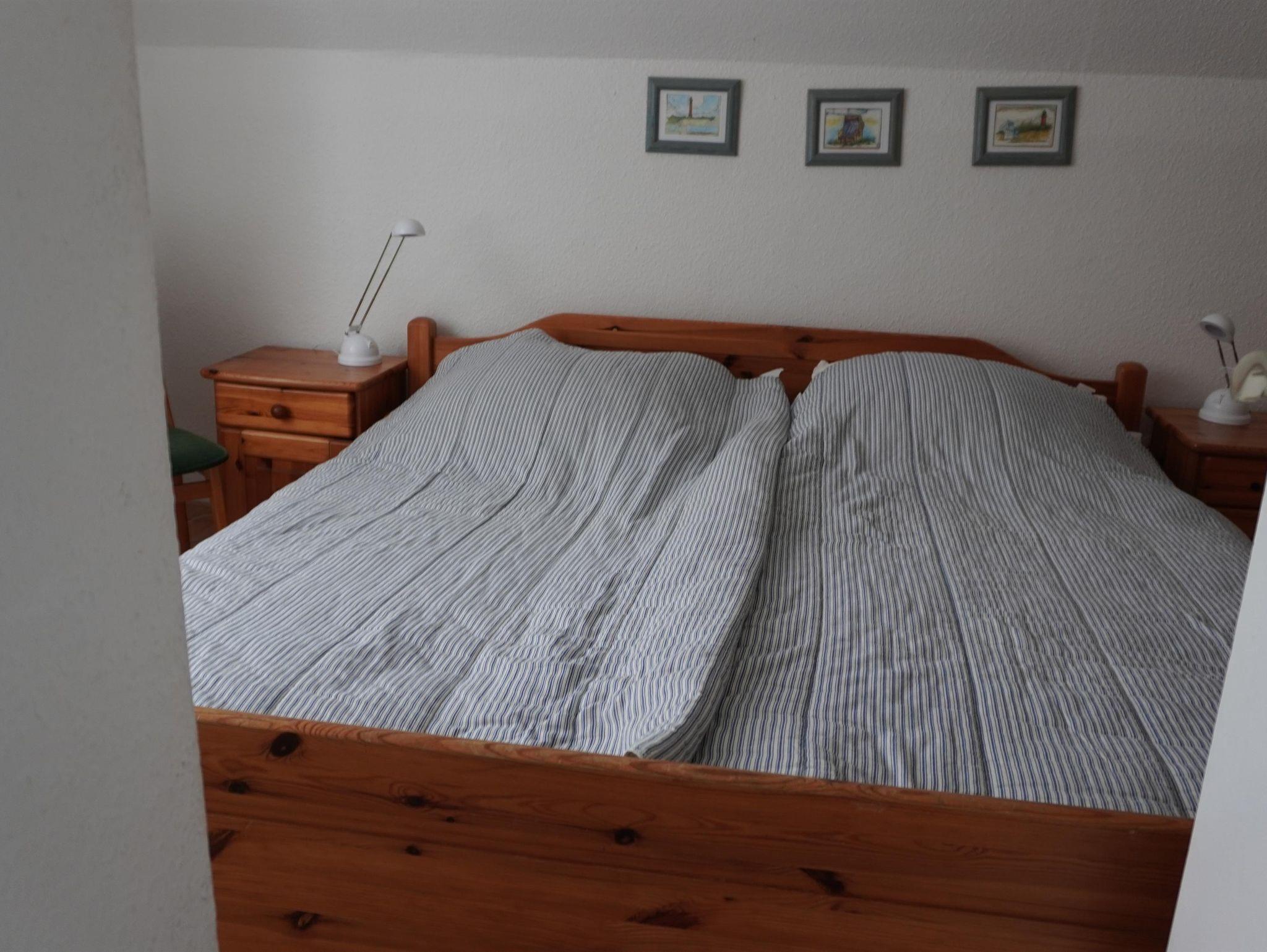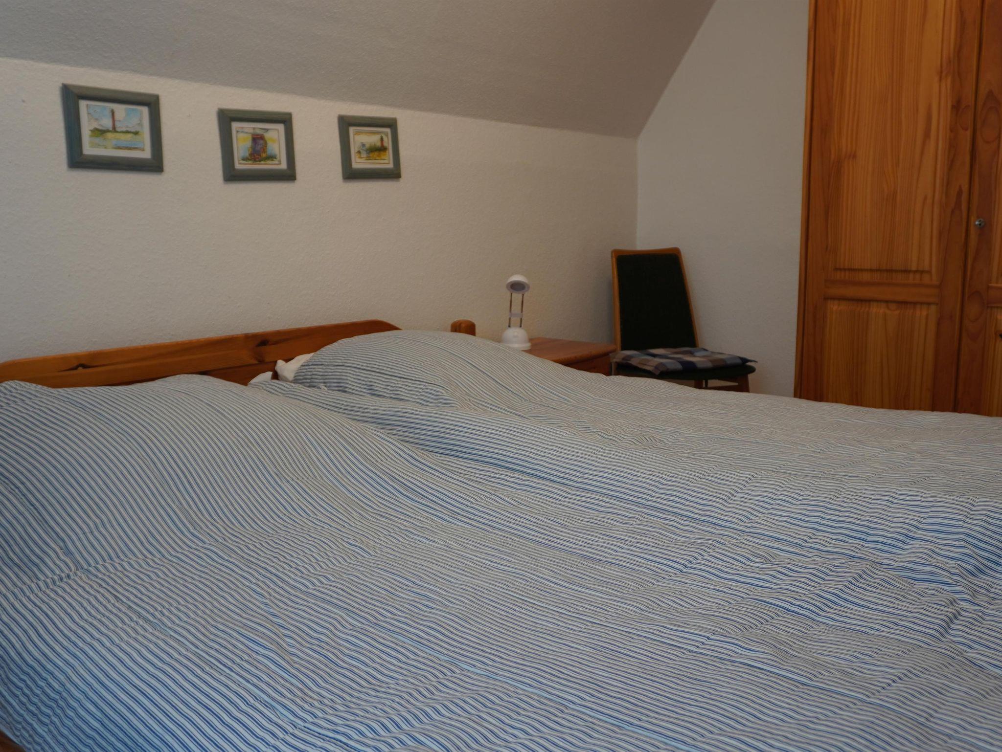 Im Erdgeschoss befindet sich ein gemütlich eingerichtetes Wohn-/Esszimmer mit Stereoanlage u. Sat-TV, eine komplett eingerichtete Küche mit Geschirrspülmaschine und Mikrowelle, ein Schlafzimmer (Doppelbett) sowie ein Bad mit Dusche/WC. Im Obergeschoss, welches Sie über eine leicht steile Treppe erreichen, stehen 2 weitere Schlafdomizile (Doppel u. Zweibettzimmer) zur Verfügung. Auf unsere kleinen Gäste warten ein Hochstuhl und ein Reisebett. Eine Kindersicherung am Treppenabgang ist vorhanden.