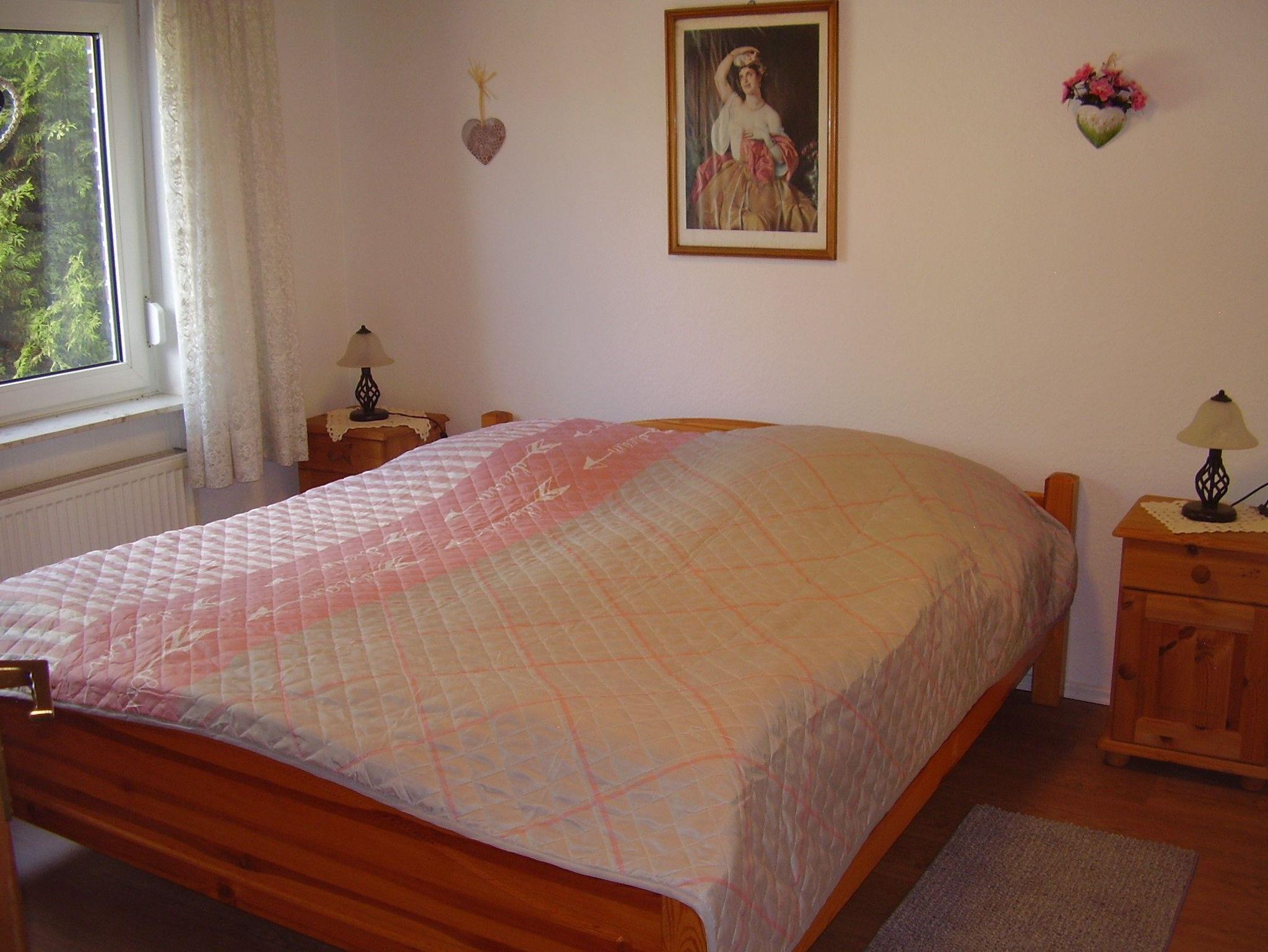 1 Schlafzimmer mit Doppelbett. Babyreisebett muss bei Bedarf mitgebracht werden.