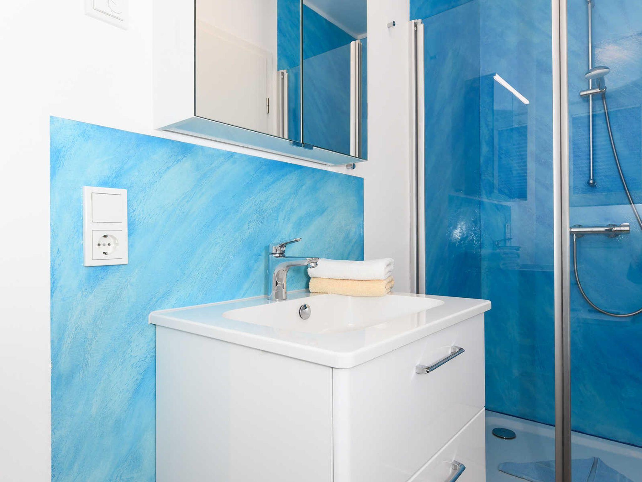 zweites Badezimmer mit Dusche, Waschtisch und WC