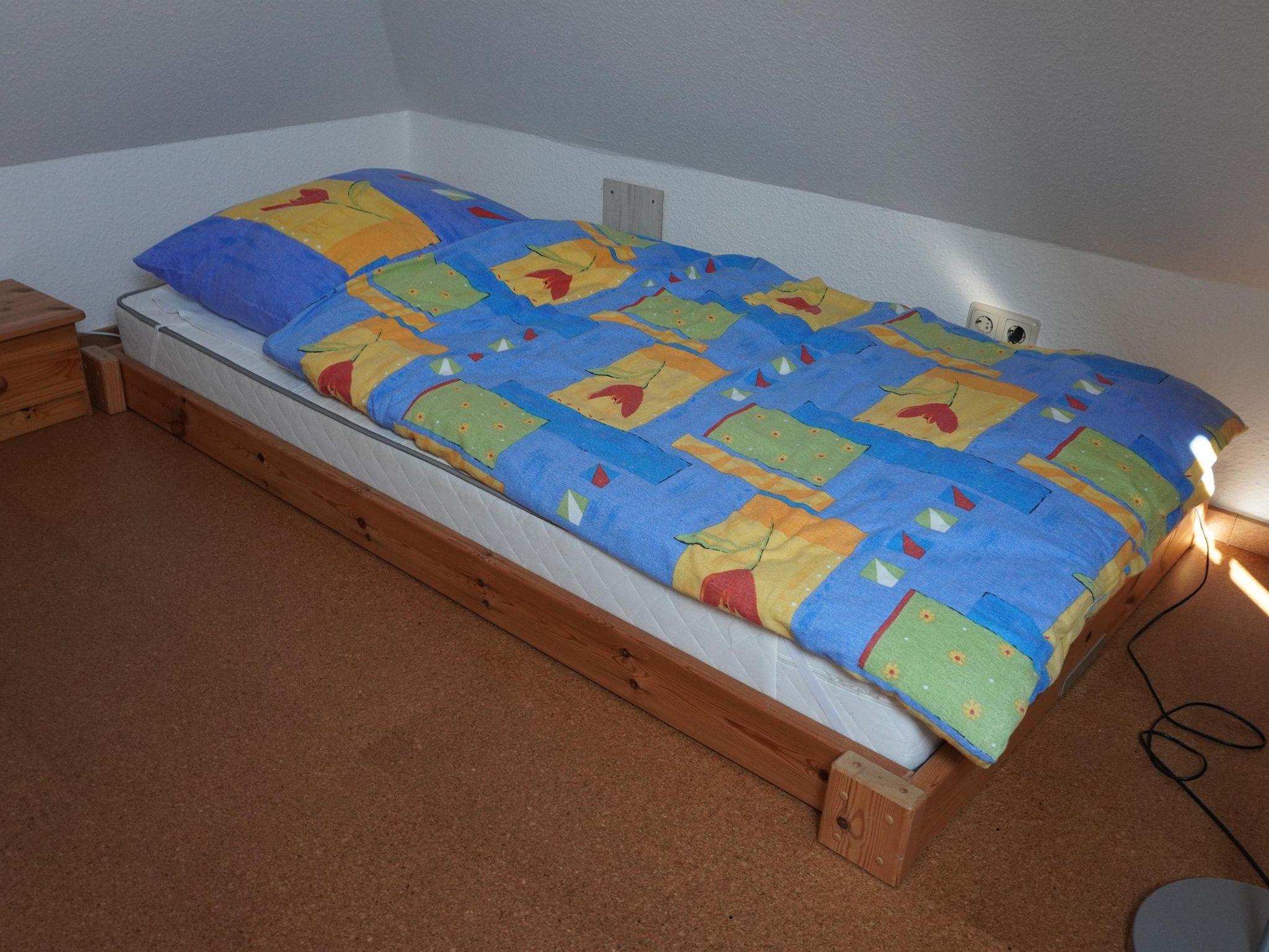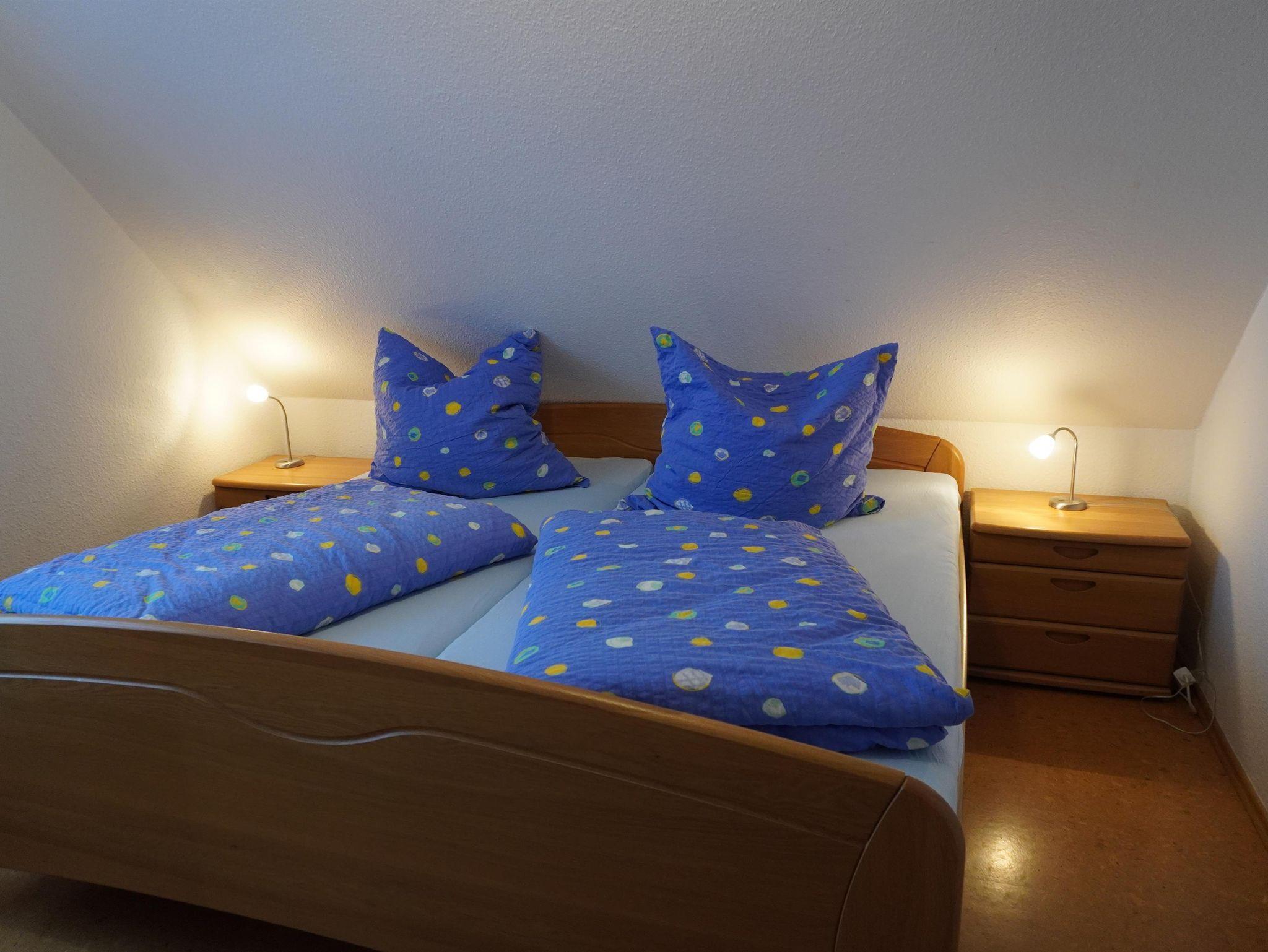 Im Erdgeschoss erwartet Sie ein gemütlich eingerichteter Wohn-/Essbereich mit Sat-TV, DVD-Player, DVDs und Stereoanlage mit Radio, CD- und MP3-Abspielmöglichkeit. Die separate Küche verfügt über jeglichen Komfort wie z.B. Geschirrspülmaschine, Vierplattenherd mit Backofen, Kühlschrank mit 3 Sterne-Gefrierfach und div. elektrische Geräte. Ein Gäste-WC mit einer Waschmaschine ist ebenfalls vorhanden. Als Schlafdomizil dienen zwei Schlafräume im Obergeschoss. Das Elternschlafzimmer ist mit einem Doppelbett (2 m x 2 m) ausgestattet und das Kinderzimmer verfügt über ein französisches Bett (1,40 m x 2 m Spannlaken ist vorhanden) sowie einem Jugendbett (1 m x 2 m). Das Bad ist mit Dusche und WC ausgestattet. Unsere kleinen Gäste können sich auf ein Reisebett (0,60 m x 1,20 m) mit separater Matratze inkl. Spannlaken und einen Kinderhochstuhl freuen.