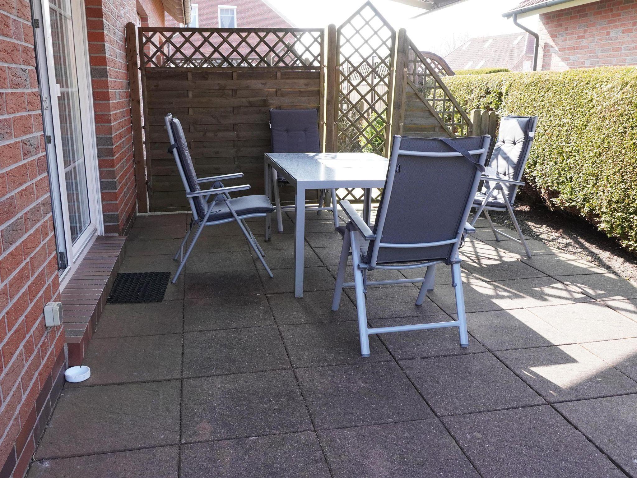 Unser Ferienhaus, ein Reihenendhaus mit ca.75 m² Wohnfläche, befindet sich in ruhiger und dennoch zentraler Lage. Es ist für 4-5 Personen geeignet. Da wir Fliesen und Kork mit Teppichläufern für unseren Fußboden ausgewählt haben, ist unser Haus Allergiker geeignet. In unserem eingezäunten Garten haben Sie die Möglichkeit zum Boccia und Federball spielen. Sie können aber auch auf unserer Terrasse, ausgestattet mit Gartenmöbeln und Grill, nach einem Tages- oder Strandausflug einfach die Seele baumeln lassen. Als Sonnenschutz dient eine elektrische Markise. 2 Damenräder, 1 Mountainbike, 1 Kinderfahrrad, 1 Bollerwagen und 2 Cityroller runden das Angebot unseres Hauses ab. PKW-Stellplatz und Abstellraum für Fahrräder vorhanden.