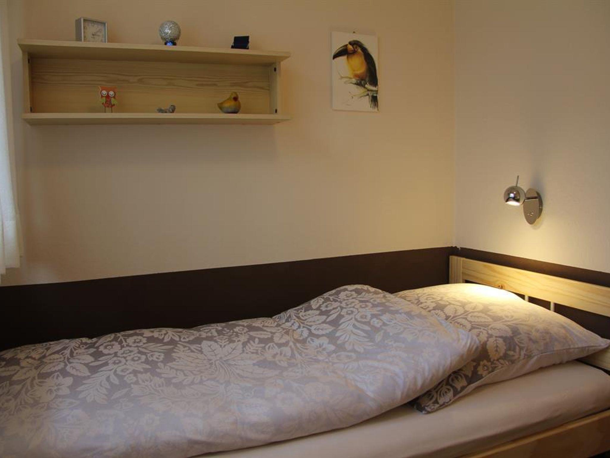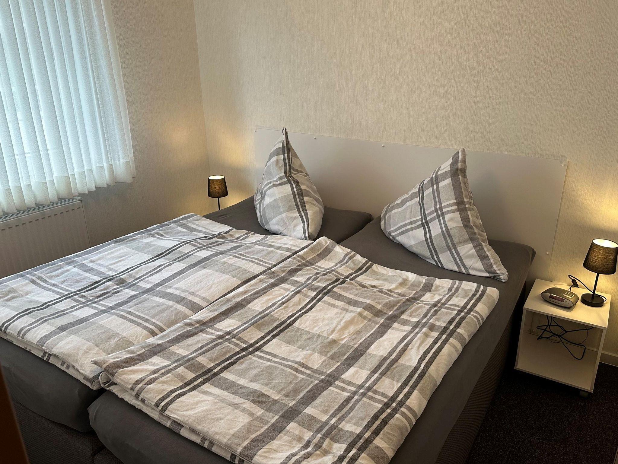 Als Schlafmöglichkeiten erwarten Sie ein Doppelzimmer mit einem Boxpringbett (1,80 x 2,00 m) sowie ein Zweibettzimmer. Das Bad ist mit DU/WC ausgestattet.