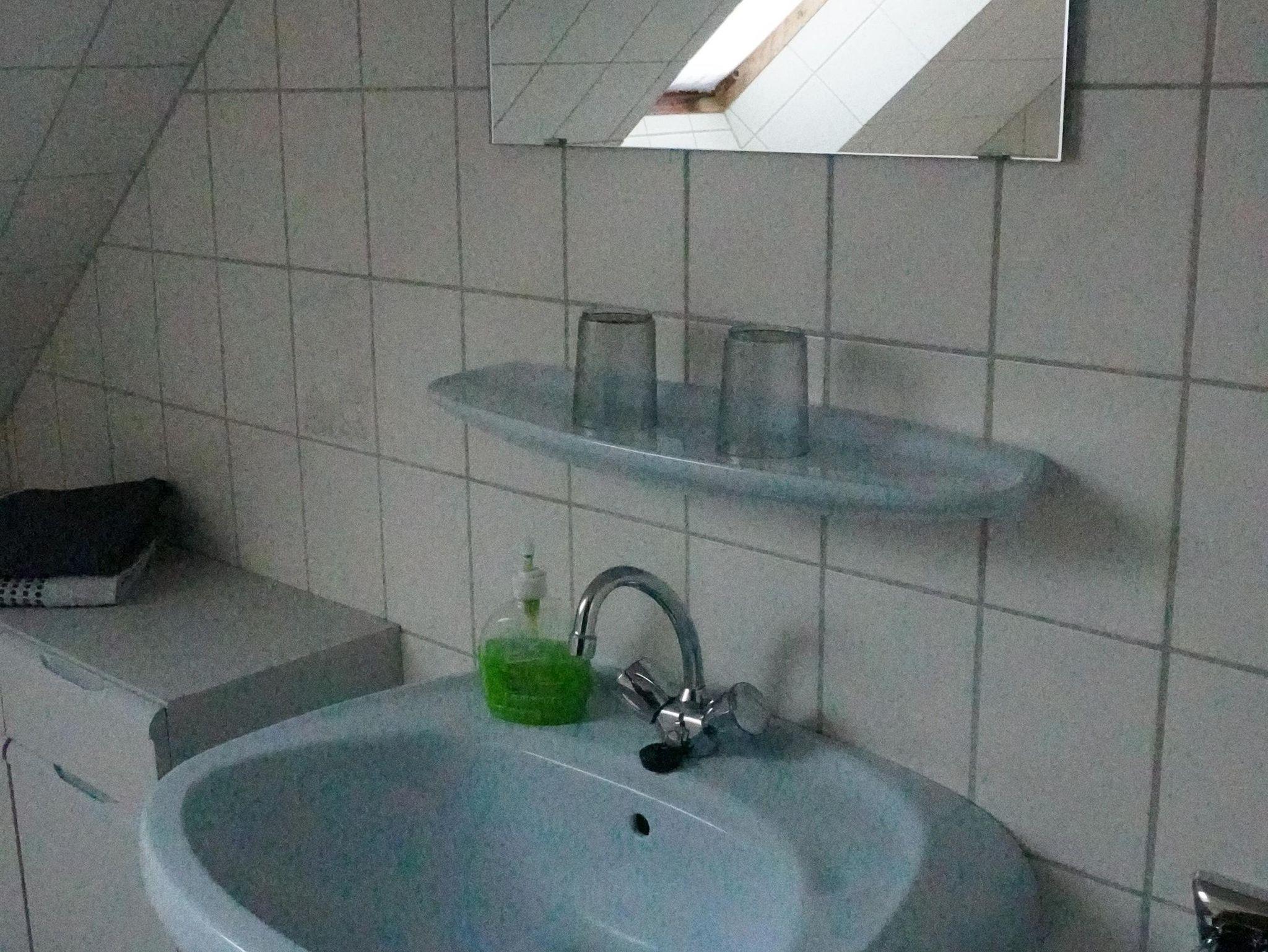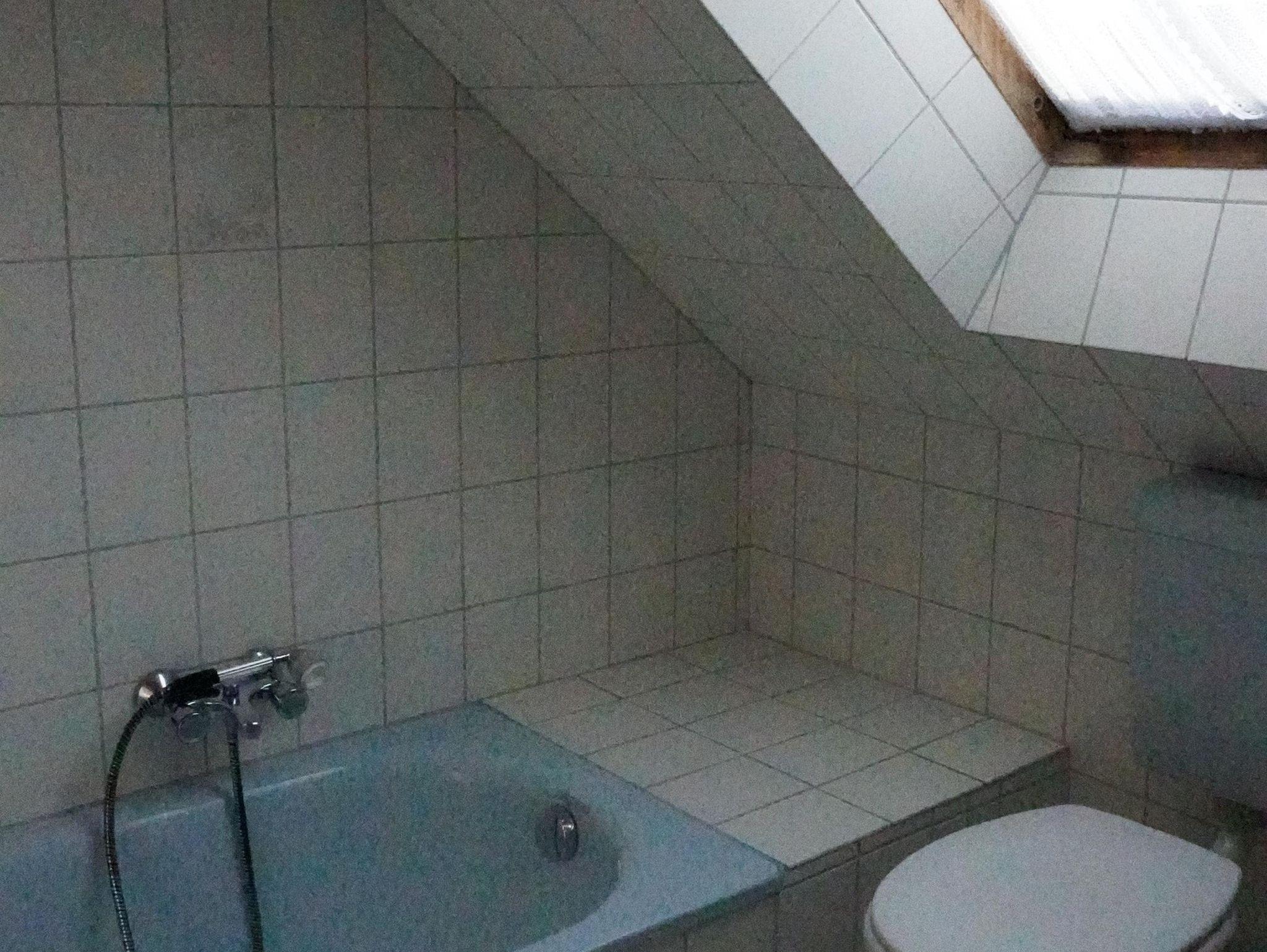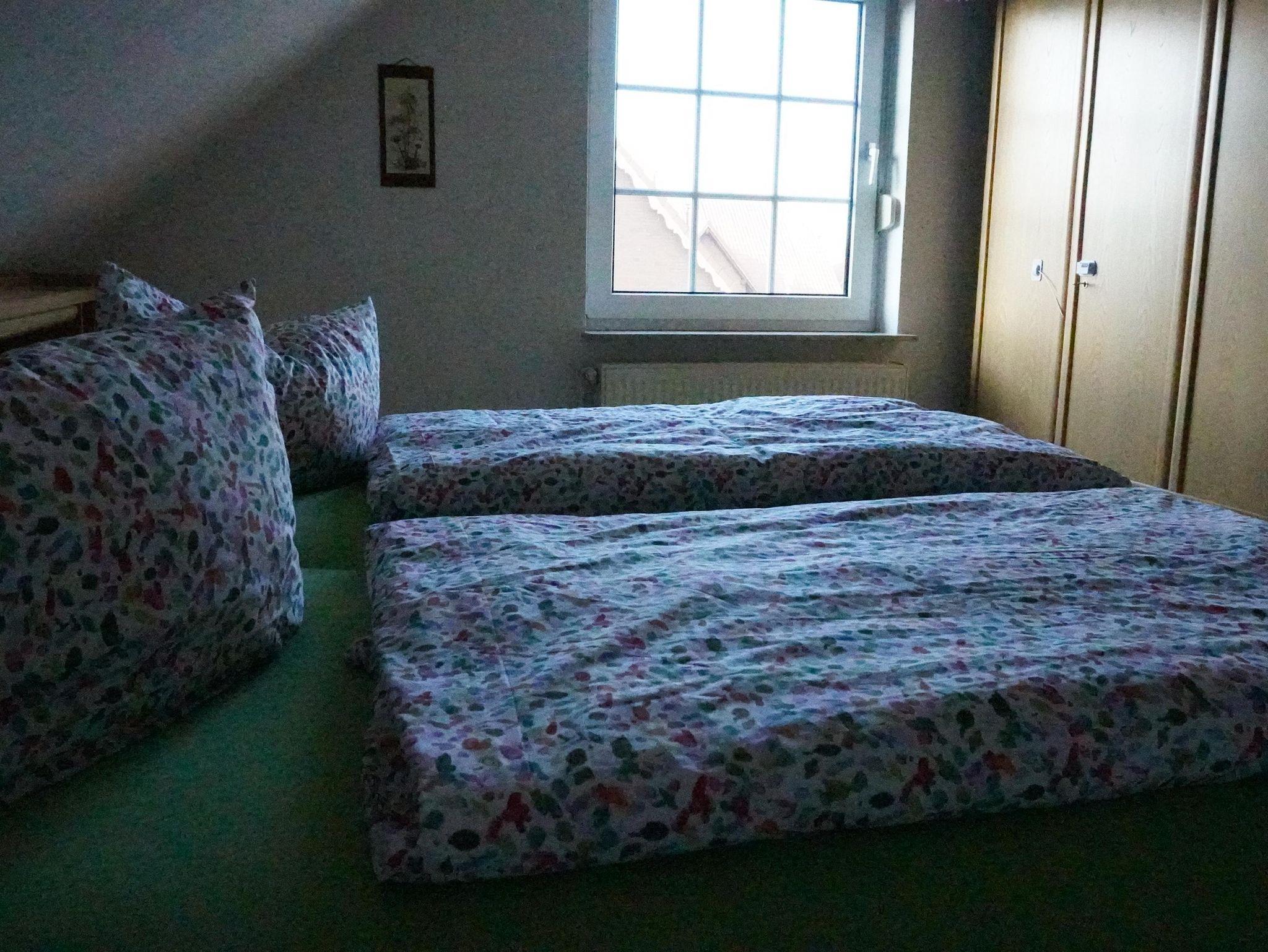 Im Obergeschoss befinden sich drei Schlafdomizile. Zwei mit einem Doppelbett (ausgestattet mit 0,90x2,00 m Matratzen) und sowie ein Zimmer mit einem Einzelbett ( 0,90 x 2,00 m ) und einem Kinderbett. Das Bad verfügt hier über Badewanne und WC. Die Bäder und die Küche haben eine Fußbodenheizung.