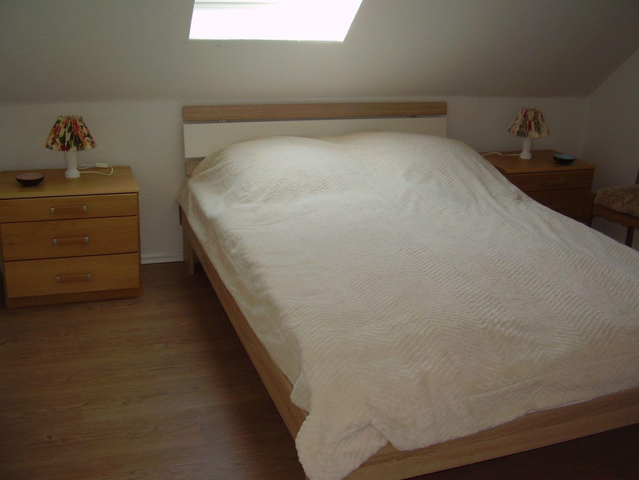 Obergeschoss: Zwei Schlafzimmer jeweils mit Doppelbett.