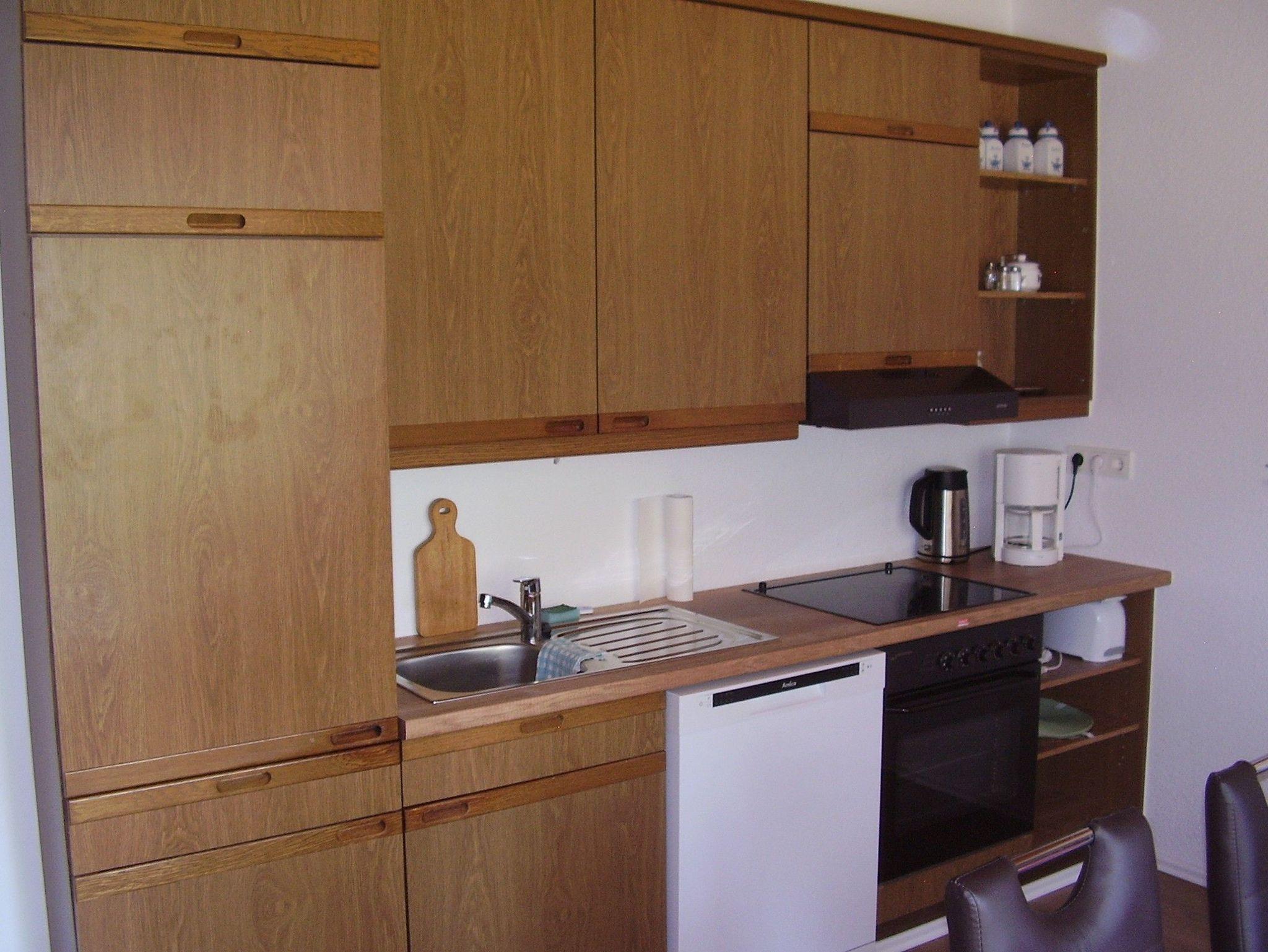 Erdgeschoss: Grosszügiges Wohn- und Esszimmer mit gemütlicher Sitzgruppe und Flachbild-TV mit Satempfang. Einbauküche mit VierPlattenHerd mit Ceranfeld und Backofen, Spülmaschine, Kühlschrank, Mikrowelle und allen erforderlichen Elektrogeräten, sowie ausreichend Geschirr, Besteck, Töpfe, etc.. 6 Personen-Esstisch mit Bestuhlung.
