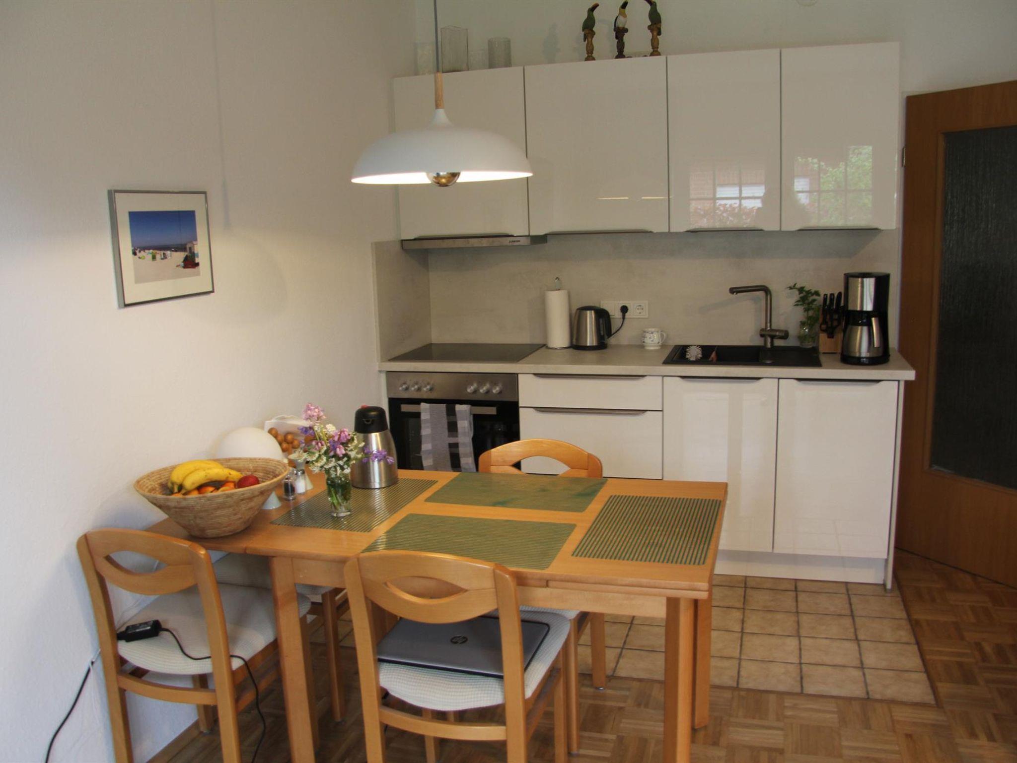 Unsere Ferienwohnung befindet sich in ruhiger Lage im Erdgeschoss eines kleinen Appartementhauses. Die Terrasse ist zum Westen ausgerichtet und lädt mit seinen Gartenmöbeln und Sonnenliegen zum Verweilen ein. Um sich vor der Sonne zu schützen, werden Sie auf unserer Terrasse einen Sonnenschirm vorfinden. Ein PKW-Einstellplatz befindet sich direkt am Haus. Ihre mitgebrachten Fahrräder findet Platz in einem separaten Abstellraum.