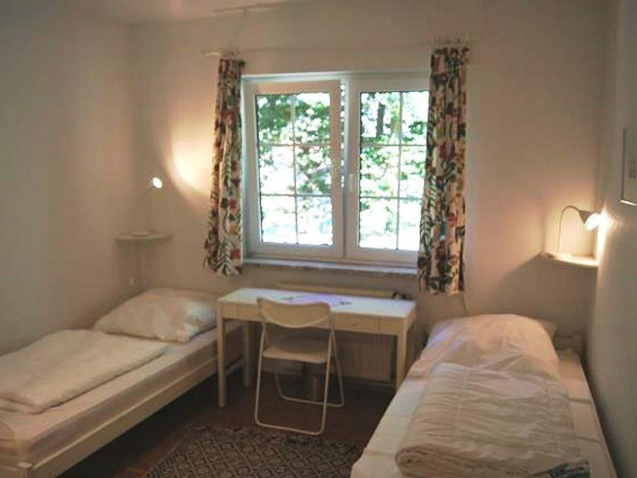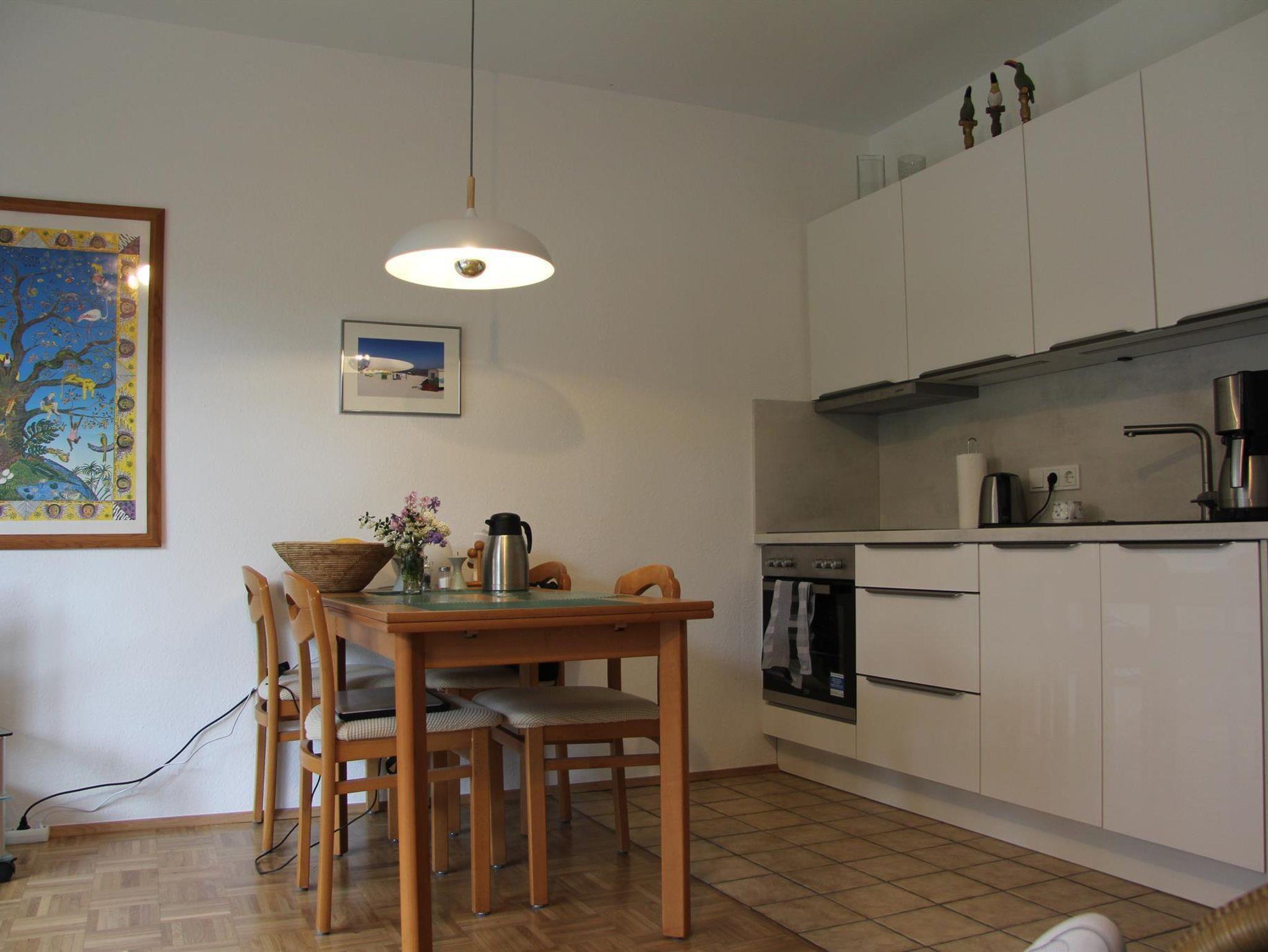 Unsere Ferienwohnung bietet Ihnen auf einer Wohnfläche von ca. 40m² einen gemütlichen Wohn-/Essbereich mit integrierter neuer Küchenzeile. In dieser werden Sie eine Geschirrspülmaschine, ein Cerankochfeld mit Backofen, ein Kühlschrank mit 3* Gefrierfach sowie weitere Elektrogeräte vorfinden. Das Funktionssofa im Wohnbereich kann zu einer bequemen Schlafmöglichkeit für bis zu 2 Personen ausgezogen werden. Als weiteres Schlafdomizil werden Sie ein Schlafzimmer mit 2 separaten Betten vorfinden. Das Bad ist mit Dusche/WC ausgestattet und wurde ebenfalls komplett renoviert. Parkettboden werden Sie im Wohn-/Essbereich sowie im Schlafzimmer vorfinden.
