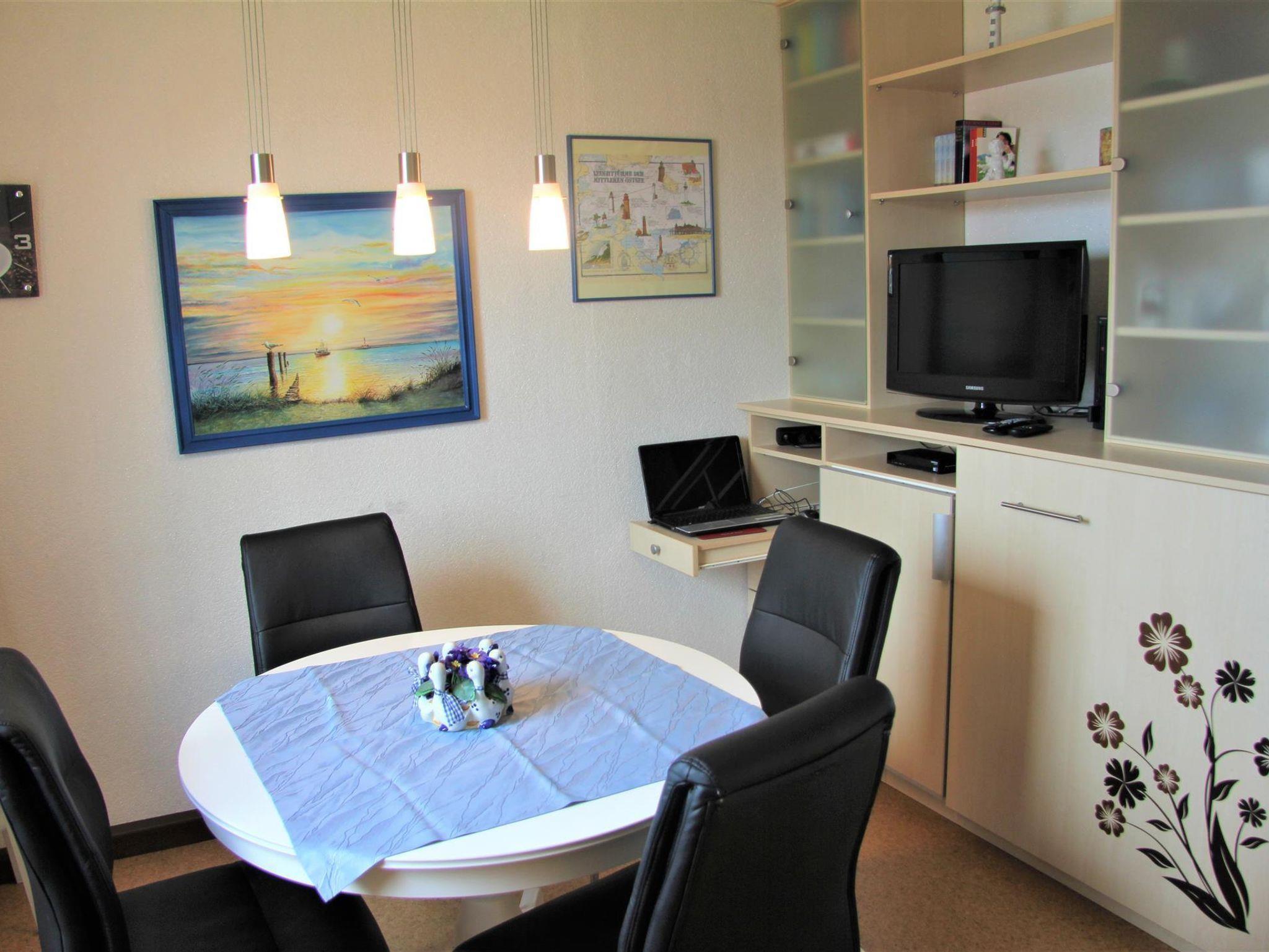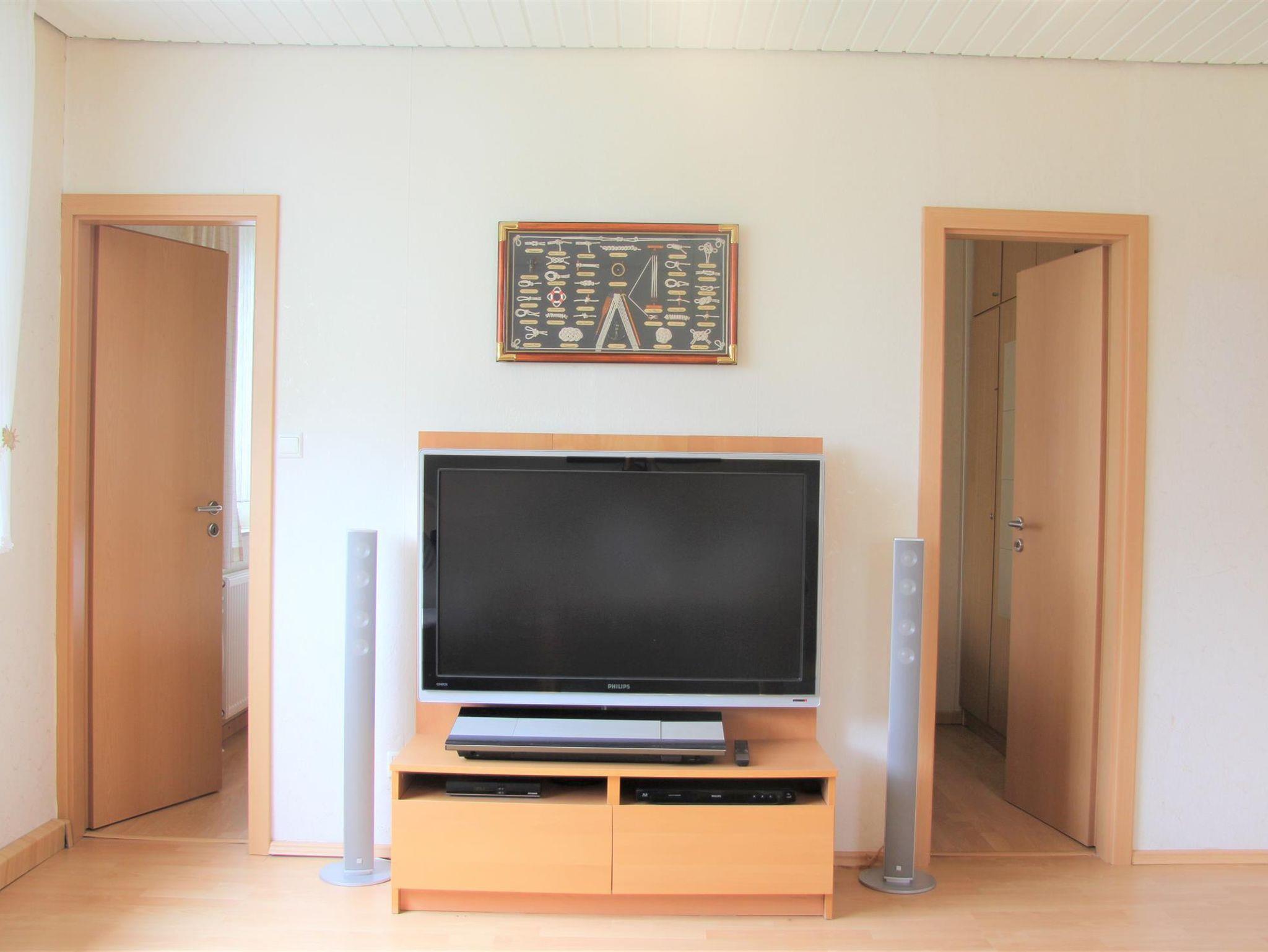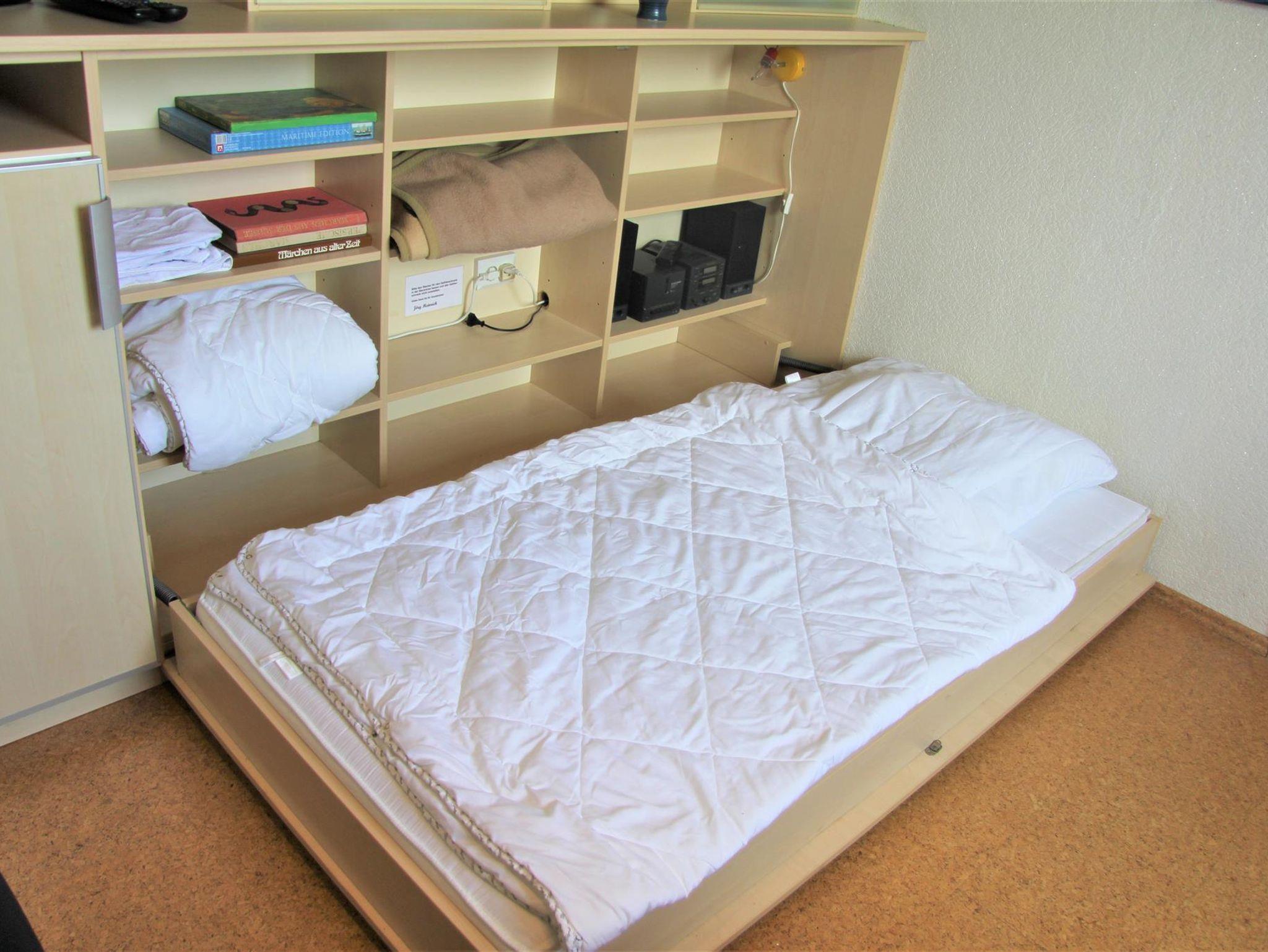Auf ca. 56 qm erwarten Sie ein Wohn-/Esszimmer, ein Schlafzimmer mit Doppelbett, eine komplett eingerichtete Küche sowie ein Duschbad. Im Wohnzimmer steht Ihnen ein LCD-SAT-Fernseher zur Verfügung. Sollte sich das Wetter einmal nicht zum Spazierengehen eignen, liegen eine Vielzahl von Büchern, Spielen, Kartenspielen und Würfel für Sie bereit. Von einem Notebook mit DSL-Internetanschluss, mit einer gesonderten Mailadresse können Sie E-Mails verschicken und neue Fotos sofort in die Welt senden. Außerdem gibt es im Haus WLAN. Das 3. Bett ist ein Schrankbett (90x190cm) im Esszimmer, welches bei Bedarf herausgeklappt werden kann. Im Schrankbett steht eine Mikro-Musikanlage mit CD/Tape und Radio. Im Doppelzimmer finden Sie ein Kinder-Reisebett, eine Kinderbettmatratze sowie dazugehörige Zudecke und Kopfkissen. In der Garage ist außerdem ein Kinderhochstuhl vorzufinden.