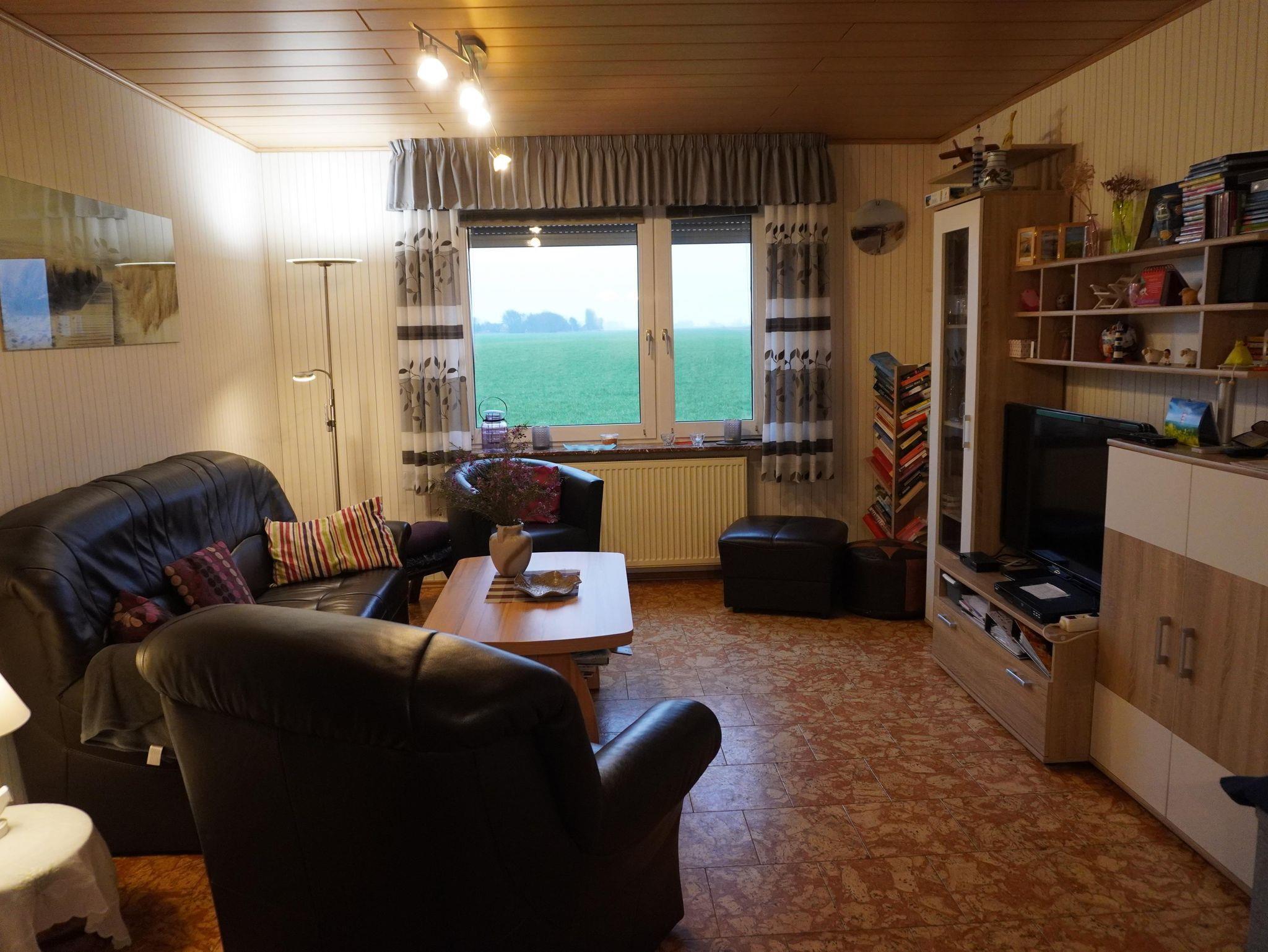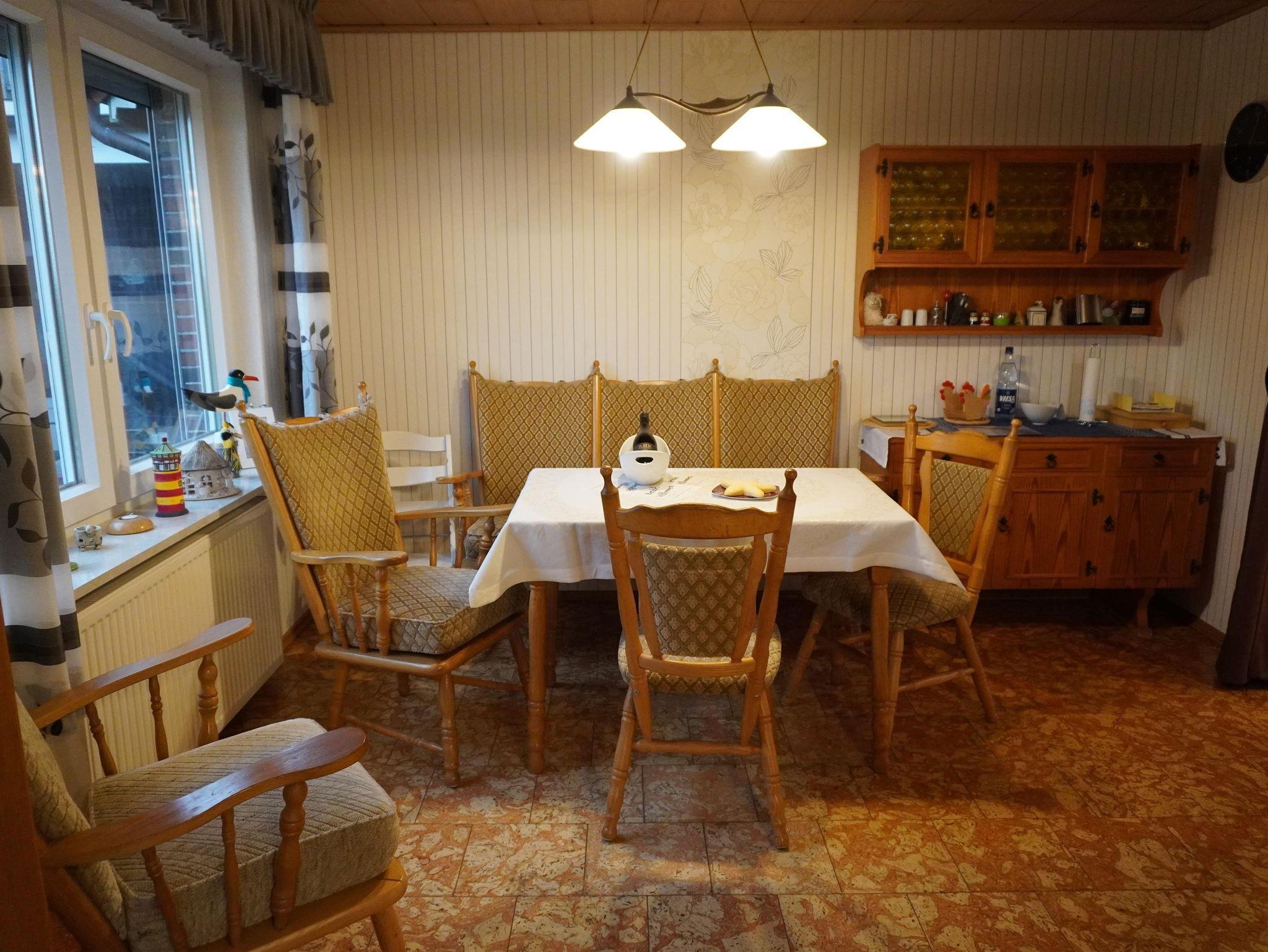 Im Erdgeschoss finden Sie eine vollausgestattete Küche mit direktem Ausgang zur Terrasse. Von dort aus haben Sie einen weitläufigen Blick über die Felder. Im Wohn- und Essbereich finden Sie neben einer gemütlichen Sitzecke, eine große Bücherecke zum Schmökern.