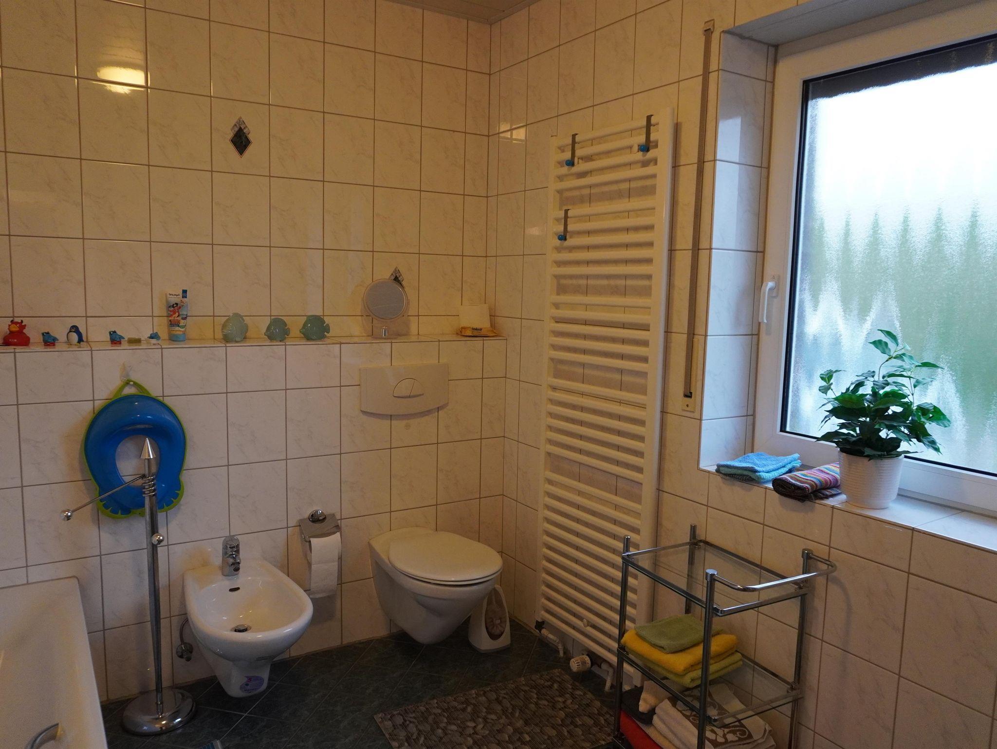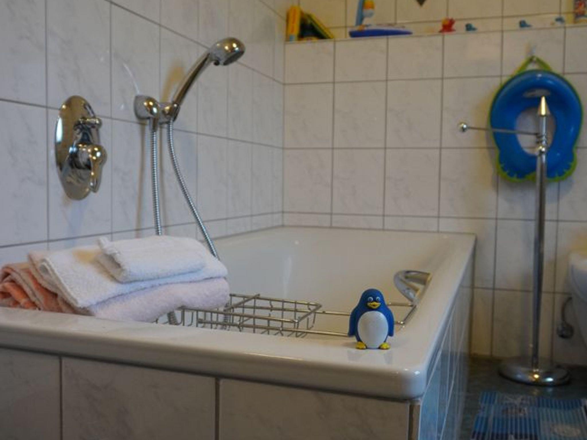 Auch zwei Ihrer Schlafdomizile finden Sie im Erdgeschoss. Eins davon mit einem französischem Doppelbett (1,40 x 2,00m), das andere mit zwei Einzelbetten (ein Boxspringbett und ein elektrisch verstellbares Bett). Im Badezimmer bietet eine Dusche, Badewanne, Bidet sowie WC. Gerne stellen wir für die Badewanne auch eine Einsteighilfe zur Verfügung.