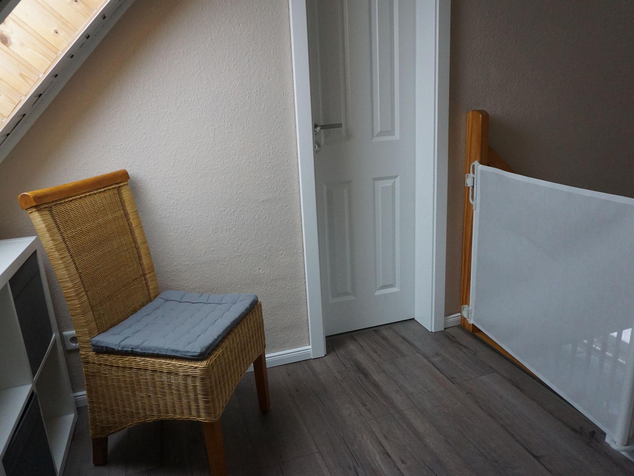 Ein Babygitterbett, eine Wickelauflage und ein zusätzliches Babyreisebett sind ebenfalls vorhanden.1 Tageslicht Bad mit Dusche und WC