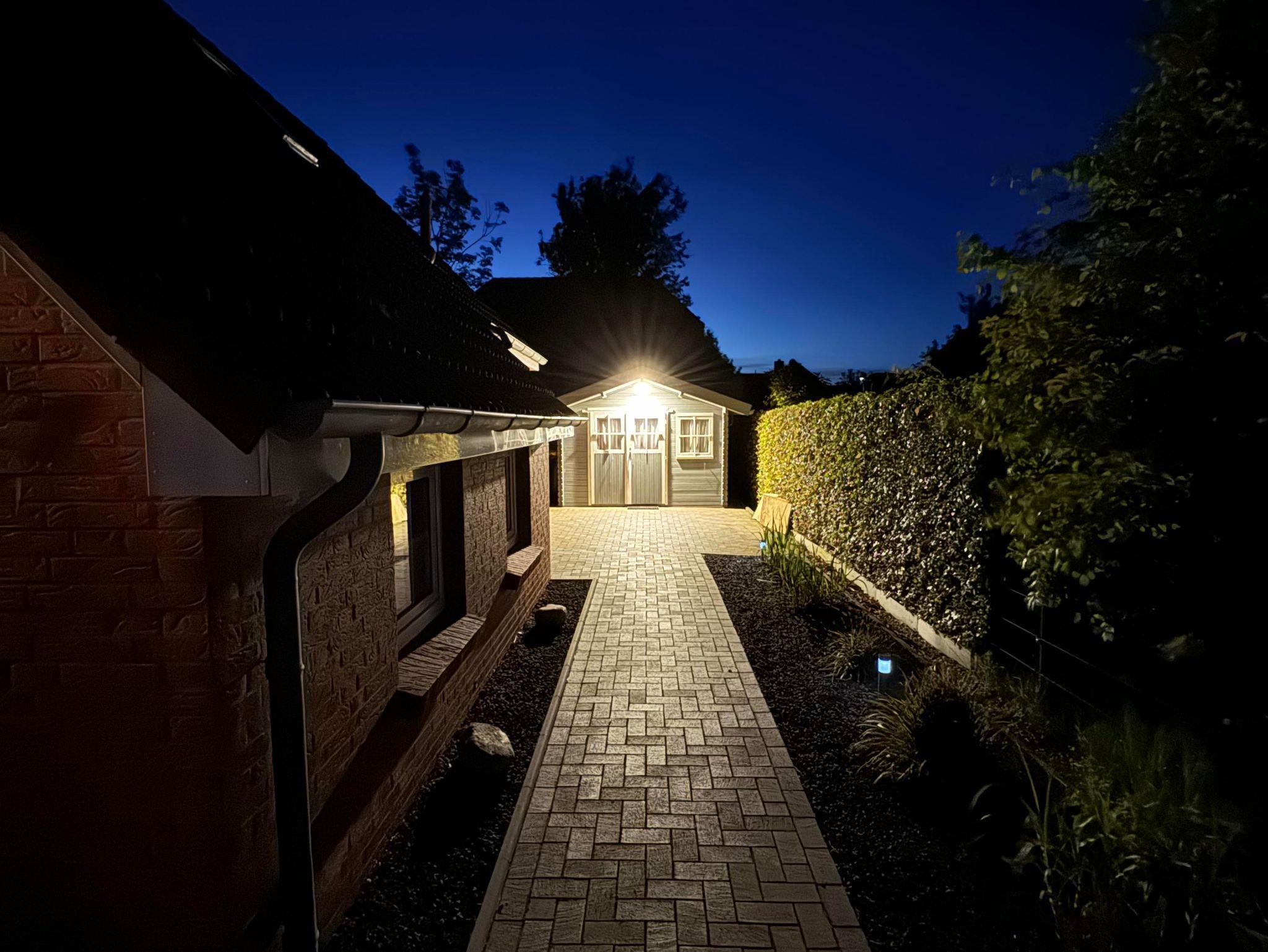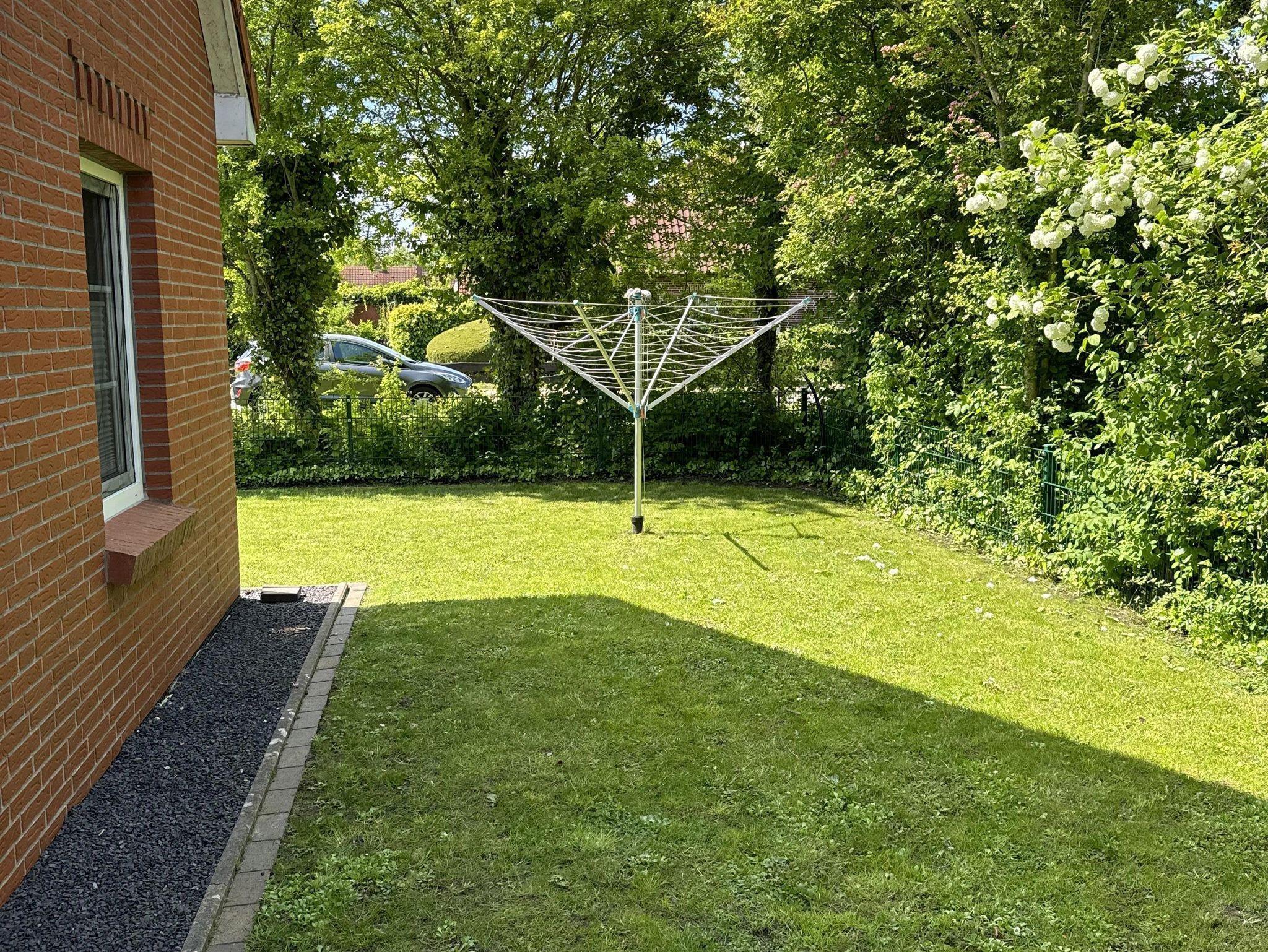 Es verfügt über einen komplett eingezäunten Garten mit Liegewiese, incl. Bestuhlung und Liegestühle in Südlage, einem Sandkasten sowie einem Gartenhaus.