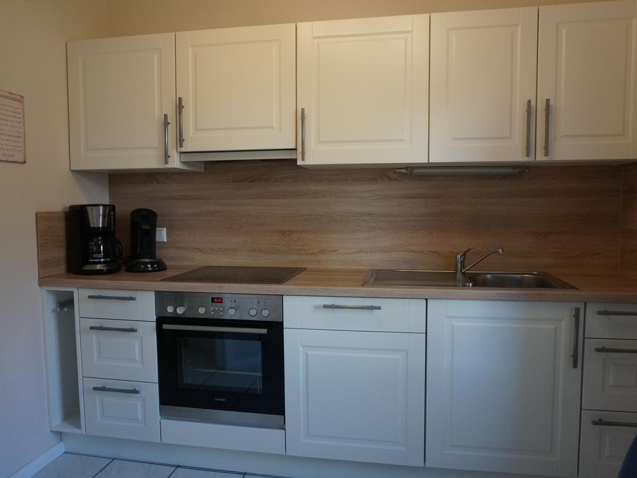 eine neue, sehr gut ausgestatteten Küche, Kaffeemaschine + Senseo Padmaschine, Microwelle, Eierkocher, Toaster, Wasserkocher, Spülmaschine