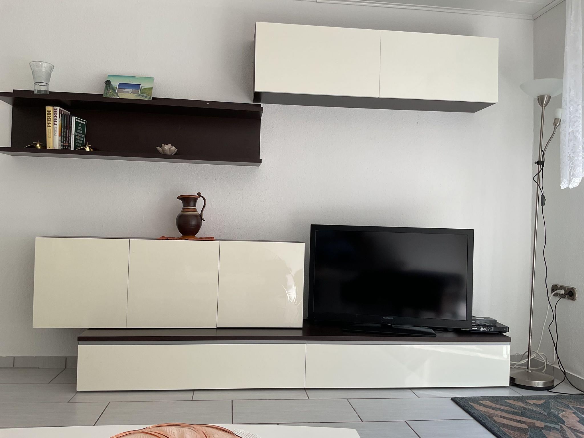 Separate Küche mit gut ausgestatteter hochwertiger Einbauküche mit 4-Plattenherd mit Ceranfeld und Backofen, Kühlschrank mit Gefrierfach, Spülmaschine, Microwelle, etc.. Esstisch mit Bestuhlung. Mini-Stereoanlage.