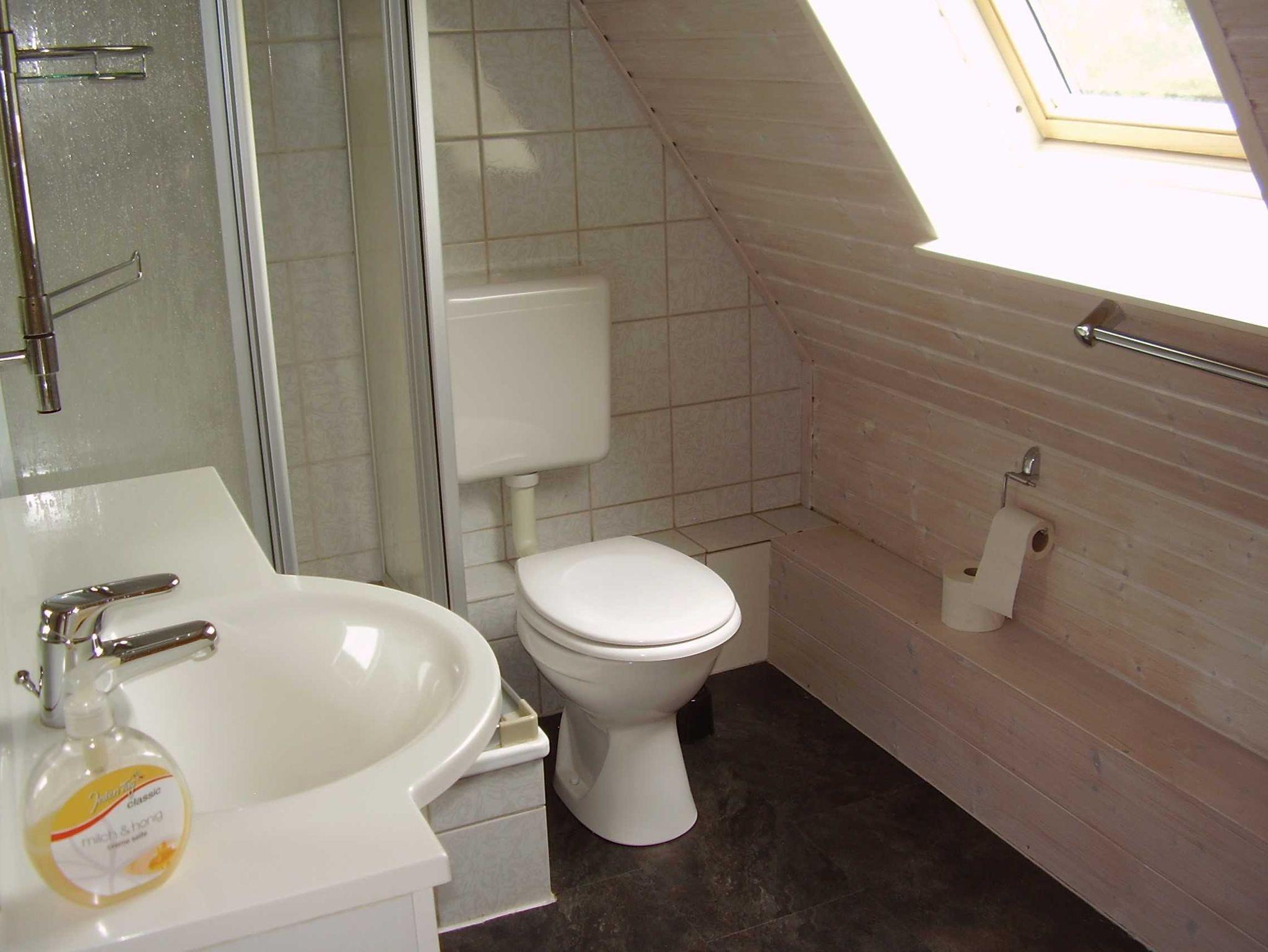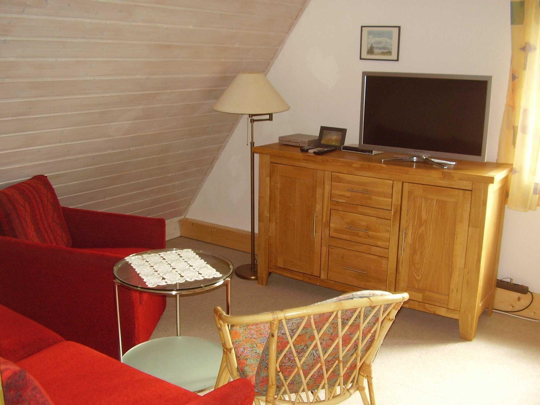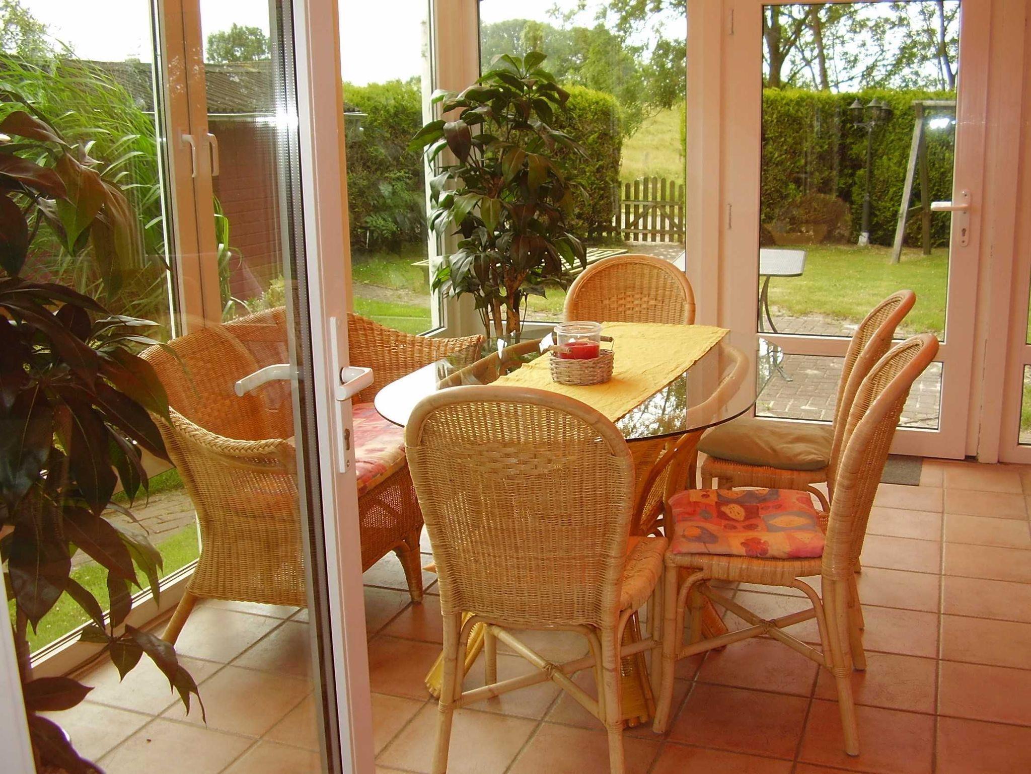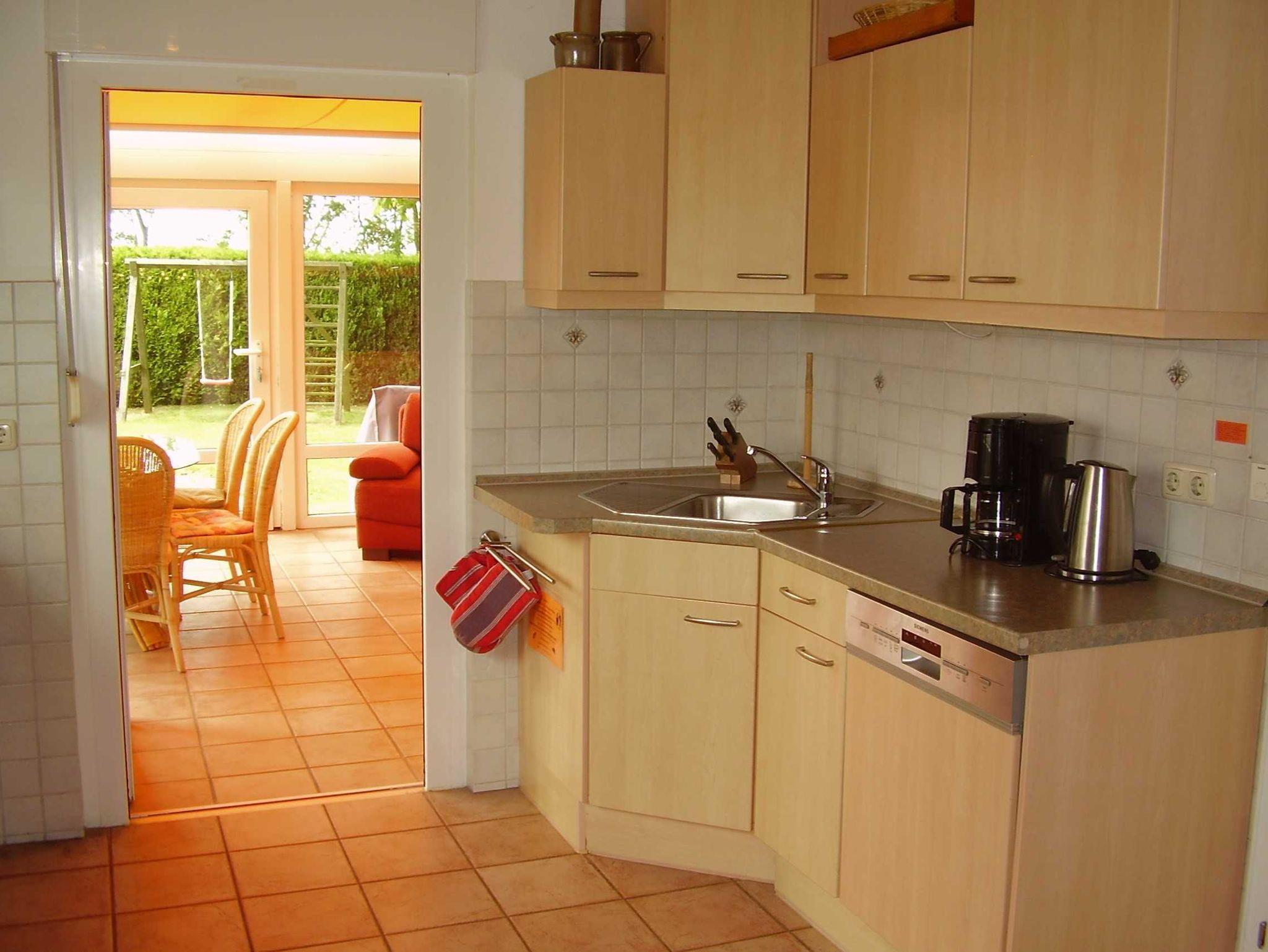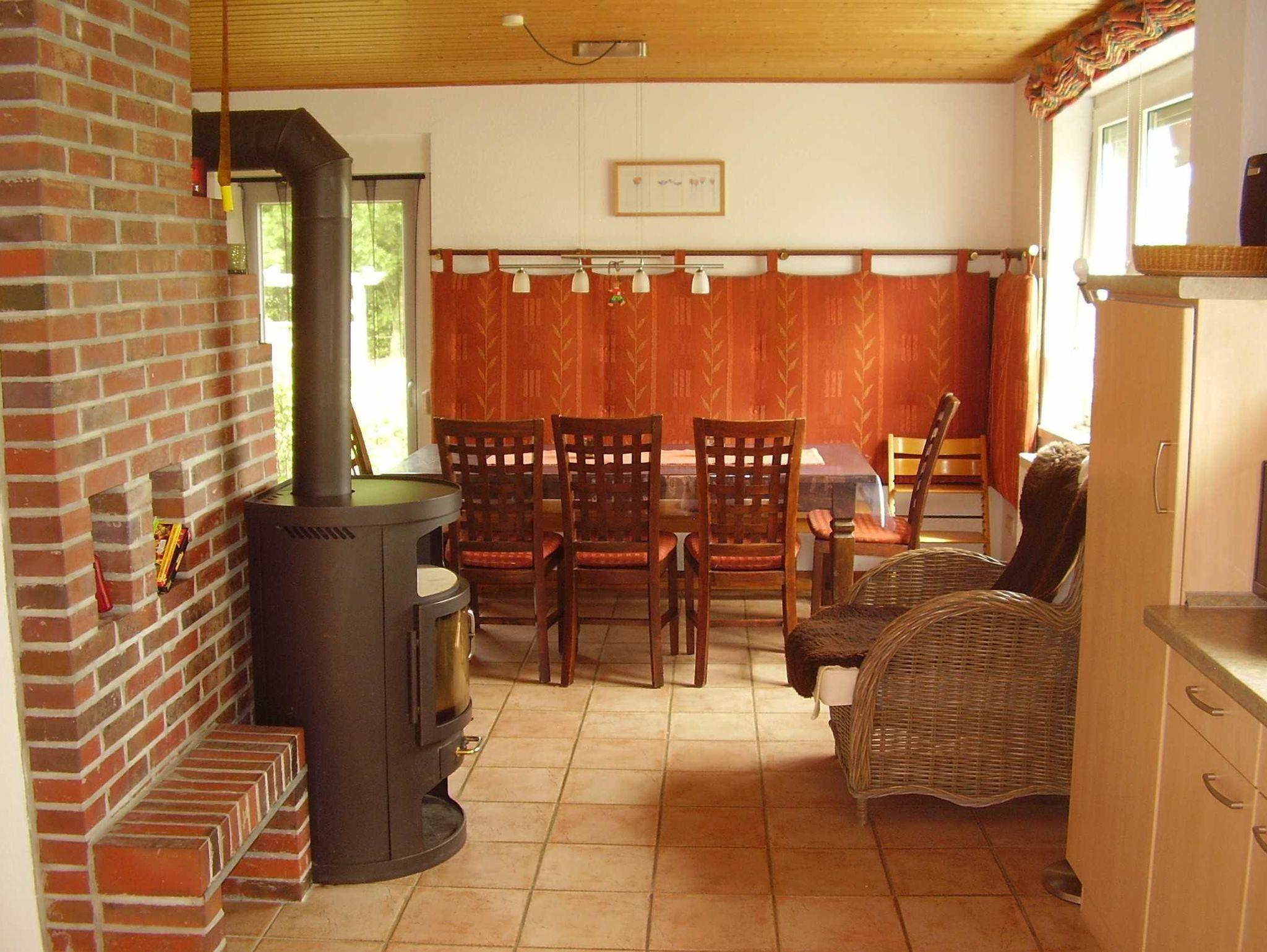 Erdgeschoss: Helles Wintergartenwohnzimmer mit Farbfernseher, DVD-Player, CD-Player. Rustikaler Ess- und Aufenthaltsbereich mit Kaminofen und Klavier. Gut ausgestattete Einbauküche mit Herd mit Ceranfeld und Backofen, Kühlschrank mit Gefrierkombination, Spülmaschine. 1 Schlafzimmer mit Doppelbett und Vollkinderbett. Rollstuhlfahrer geeignetes Badezimmer mit befahrbarer Dusche und WC mit schwenkbarer Haltevorrichtung. Waschmaschine mit Münze.