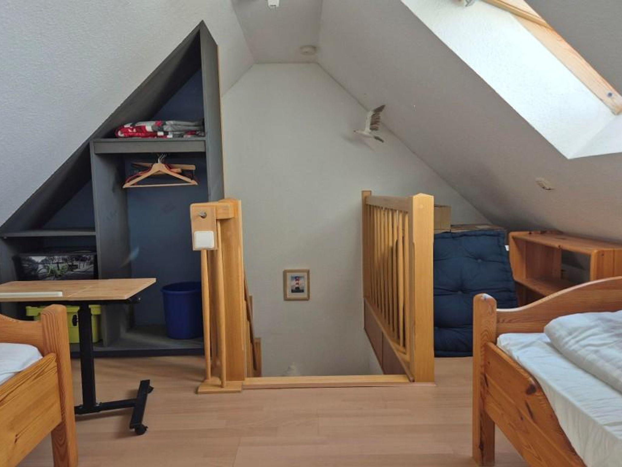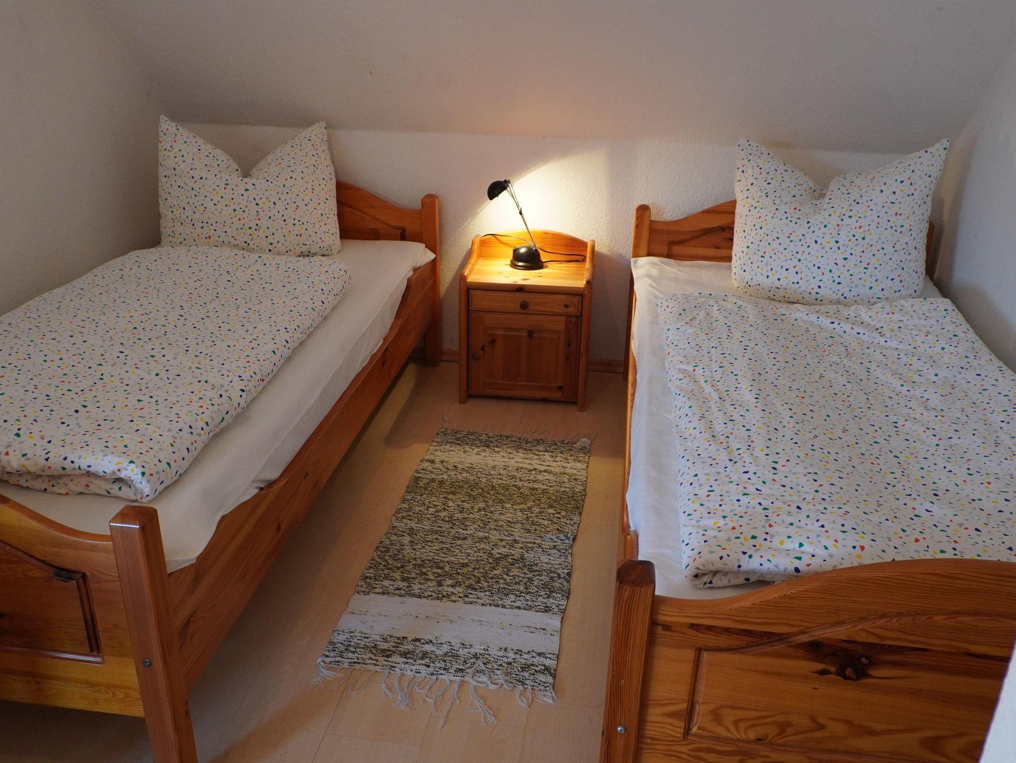 Das Elternschlafzimmer ist mit einem Doppelbett a 90 cm x 200 cm (zwei getrennten Matzrazen) ausgestattet.In den zwei Kinderzimmern befinden sich je zwei Betten a 90 cm x 200 cm. Eines dieser Zweibettzimmer befindet sich im offen ausgebauten Spitzboden direkt unterm Dach.