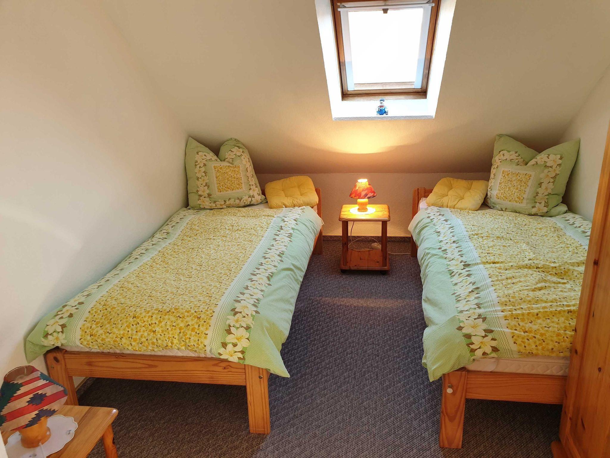 Ein Schlafzimmer mit 2 Einzelbetten.