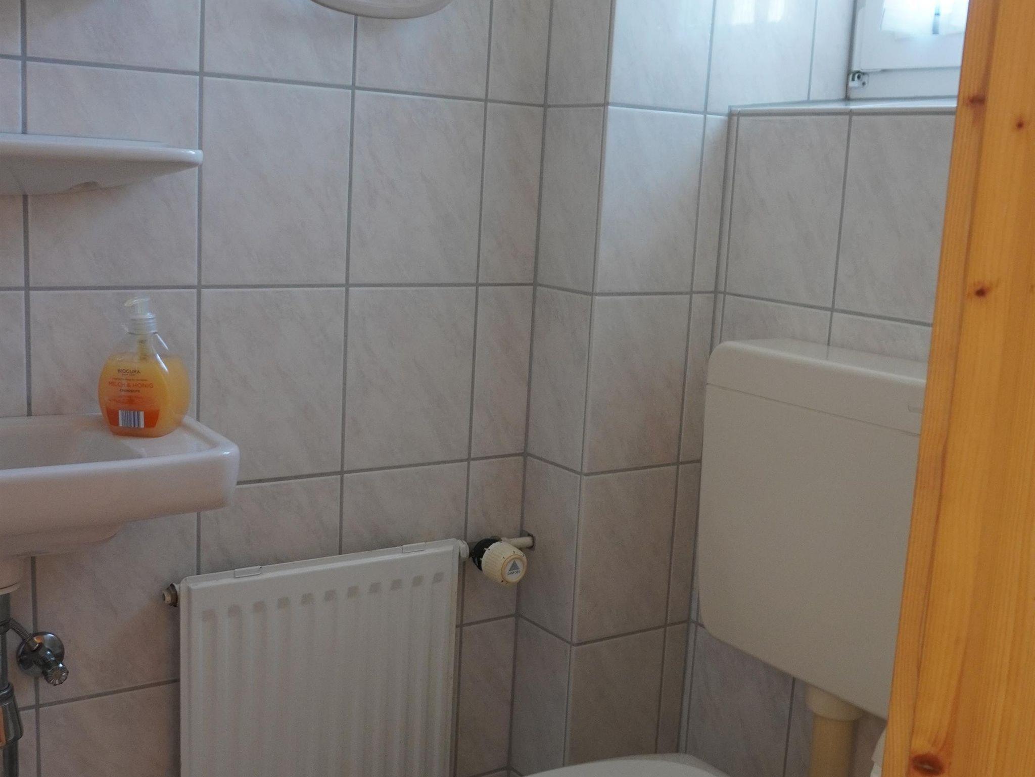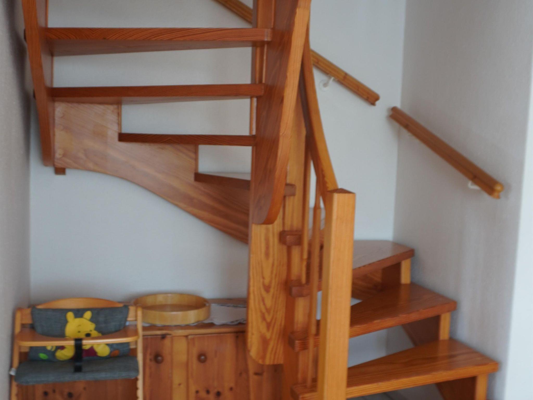 Durch den Eingangsbereich im Erdgeschoss, von dem auch ein Bad mit Dusche und WC abgeht, gelangen Sie in unser komplett gefliestes Ess- / Wohnzimmer. Neben einer Esstischgarnitur für 5 Personen, welche sie im Erker vorfinden, steht Ihnen im Wohnzimmerbereich eine gemütliche Rundcouch mit entsprechendem Couchtisch sowie eine offen gestaltete Schrankwand zur Verfügung. Zur Unterhaltung stehen ein SAT-TV, ein DVD-Player und eine HIFI- Anlage bereit. Für die Kommunikation im Internet bieten wir Ihnen kostenloses W-LAN an. Die angrenzende, im November 2019 eingebaute, Einbauküche, ist neben einem Kühlschrank mit Gefrierfach, einem Backofen, einer Geschirrspülmaschine, einer integrierten Mikrowelle, diversen Küchen-Elektrogeräten auch mit reichlich Geschirr ausgestattet. Geschirrtücher, Spül- und Reinigungsmittel sind ebenso wie diverse Grundgewürze, Mehl und Zucker vorhanden. Hier können Sie nach herzenslust kochen und genießen.