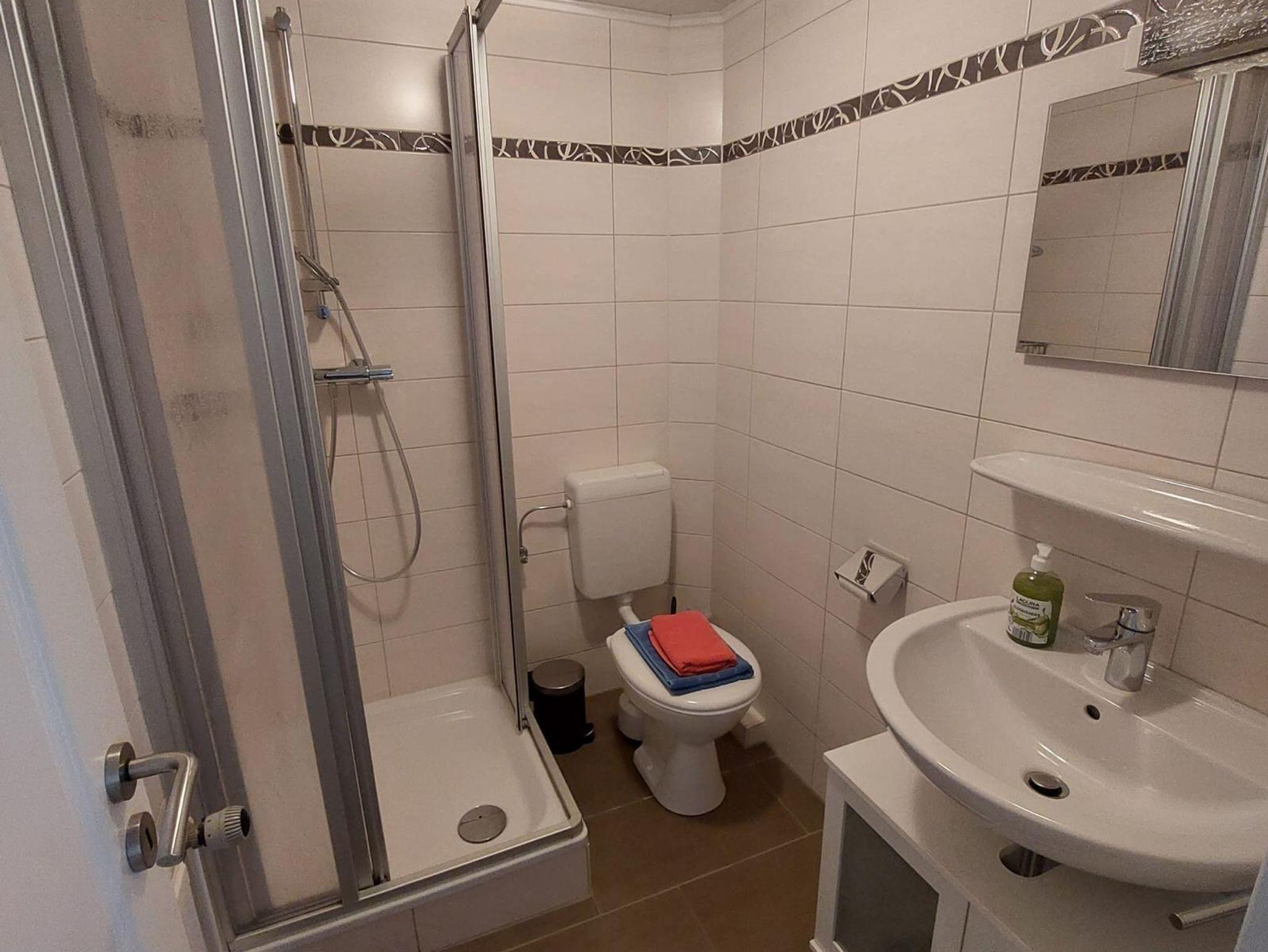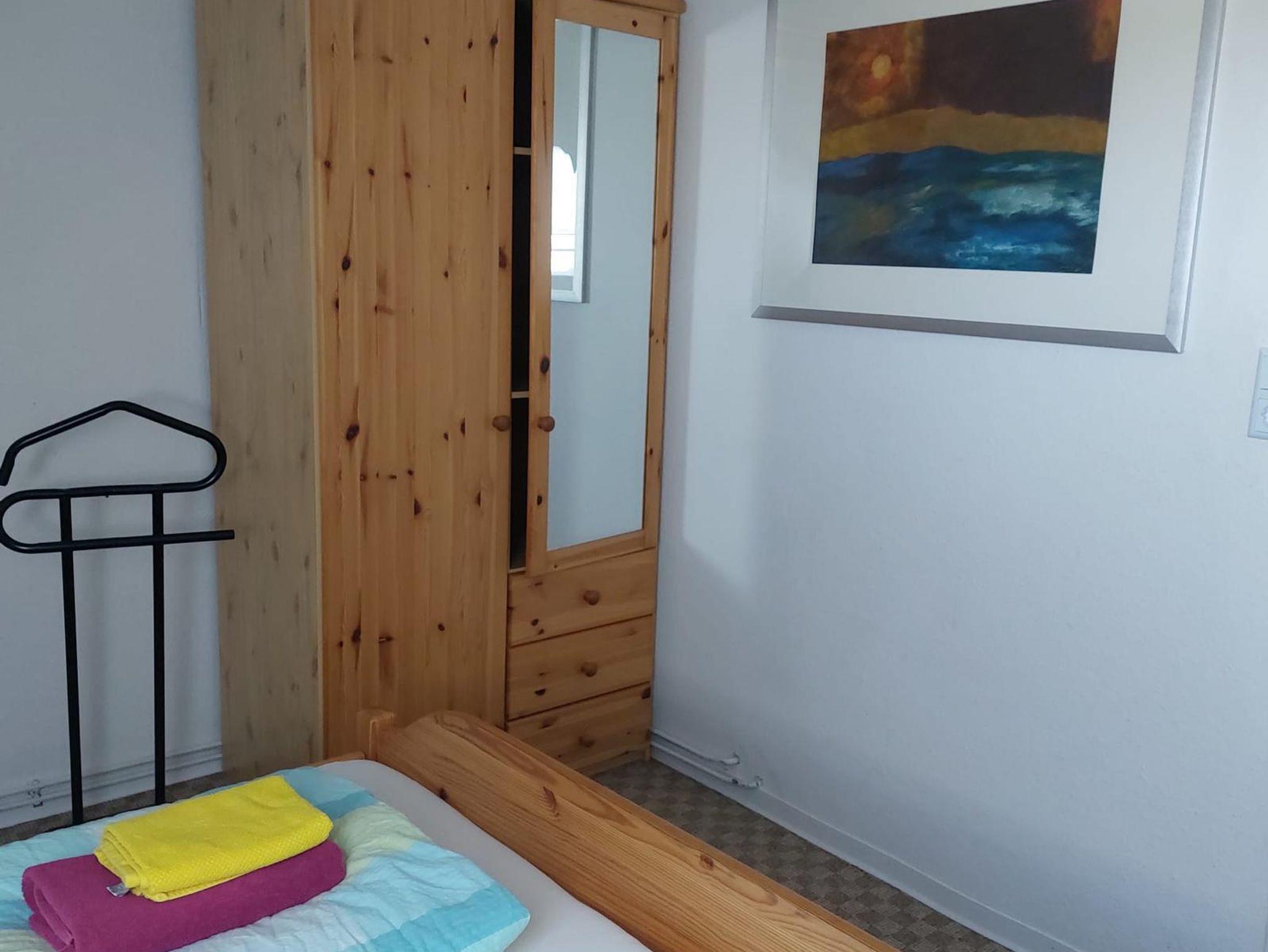 Die Ferienwohnung Vorne (ca. 80 m²) erstreckt sich über das Erd- und Obergeschoß unseres Ferienhauses. Vom gemütlichen Wohn-/Essbereich mit integrierter Küchenzeile gelangen Sie auf die Terrasse mit Gartenmöbeln. Die Schlafzimmer teilen sich in zwei mit jeweils einem Doppel- und das Weitere mit einem Einzelbett auf.